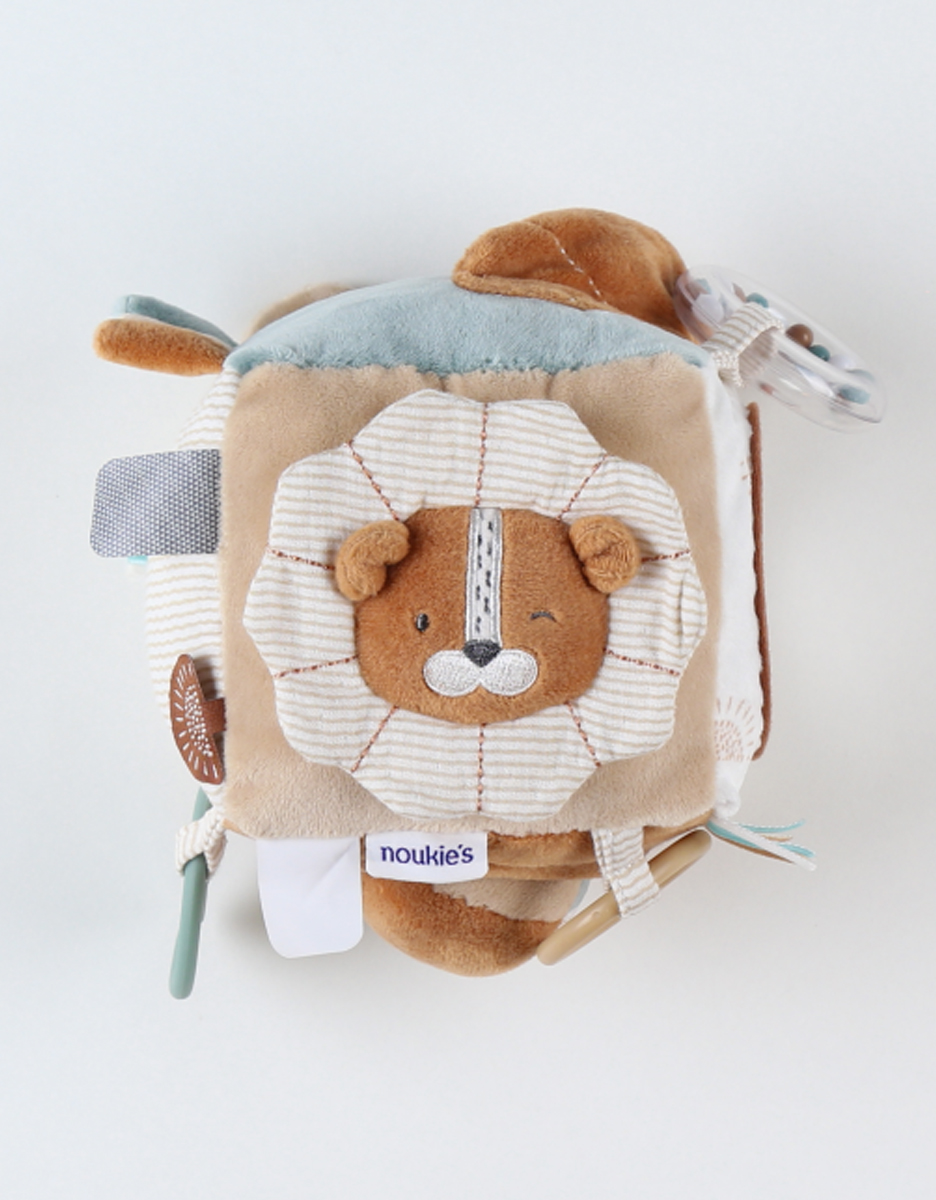 Die bunten Farben und verschiedenen Materialien regen die Neugier an und unterstützen die Entwicklung von Feinmotorik und Hand-Auge-Koordination. Weich und griffig liegt der Würfel gut in kleinen Händen. Ein Spielzeug, das mitwächst und immer wieder neue Entdeckungen ermöglicht.