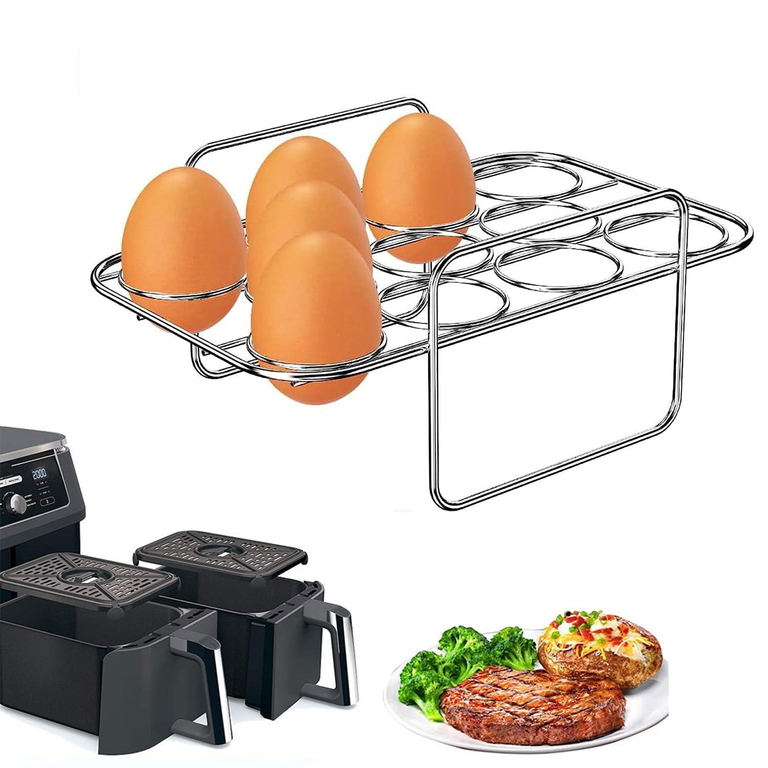• Fyearfly Dampfgarer-Set Für Ninja FOODI - Edelstahl Mit Ei-Gestell & Grillspießen