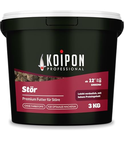 Einfach eine Portion ins Wasser geben und zusehen, wie deine Störe sich drauf stürzen! Das Futter unterstützt nicht nur ihr Wachstum, sondern auch ihre Vitalität und Gesundheit. So macht Teichpflege richtig Spaß!