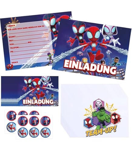 Planst du eine coole Superhelden-Party? Mit diesen Einladungskarten machst du alles richtig! Das Set enthält 12 Karten im A6-Format plus passende Umschläge – alles im Superhelden-Design. Perfekt für Jungs zwischen 3 und 12, die Fans von Spider-Man, Captain America oder Iron Man sind. Die Karten sind schon auf Deutsch vorbereitet: Du musst nur noch Datum, Ort und Name eintragen. Kein Stress mehr mit dem Organisieren! Hergestellt in Deutschland auf hochwertigem Karton, super einfach zu beschriften. Ob Geburtstag, Feier oder Überraschung – damit sind die Einladungen schnell erledigt und kommen mega an!