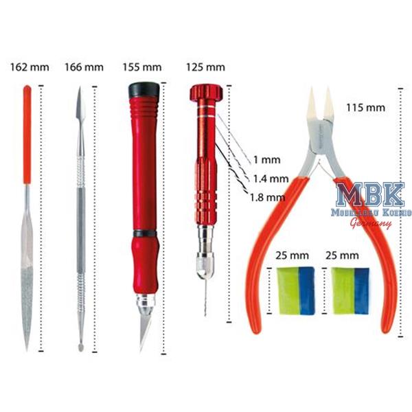 Modellbau-Einsteiger, dieses Italeri Werkzeug-Set ist der perfekte Start in euer neues Hobby! Enthalten sind alle Basics die ihr braucht: verschiedene Pinsel in Rund- und Flachform für feinste Details, ein präziser Seitenschneider für saubere Schnitte, Feilen für glatte Kanten und Pinzetten für die kleinsten Teile. Alles in hochwertiger Qualität das lange hält. Ob für Plastikmodelle, RC-Cars oder andere Bastelprojekte - mit diesem Set seid ihr bestens ausgestattet. Die Werkzeuge liegen gut in der Hand und machen die Arbeit gleich doppelt so angenehm. Einfach auspacken und loslegen - mehr Spaß am Modellbau geht kaum!