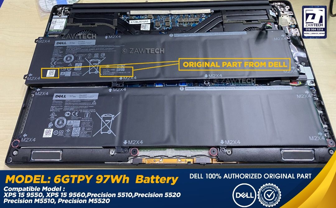 Ihr Dell XPS 15 (7590) wird schnell schlapp? Dieser originale Dell Akku mit 97Wh Kapazität und 6 Zellen bringt neuen Schwung! 100% kompatibel und passgenau - einfach den alten Akku austauschen und Sie haben wieder volle Leistung. Technische Daten: 97Wh / 8500mAh, 11,4V, schwarz. Perfekte Passform, maximale Sicherheit vor Überhitzung und lange Lebensdauer. Kompatibel mit vielen XPS 15 (7590) Modellen. Einfache Montage: Netzteil ziehen, Gehäuse öffnen, alten Akku entfernen, neuen einsetzen. So einfach geht's! Original Dell Qualität für maximale Zuverlässigkeit.