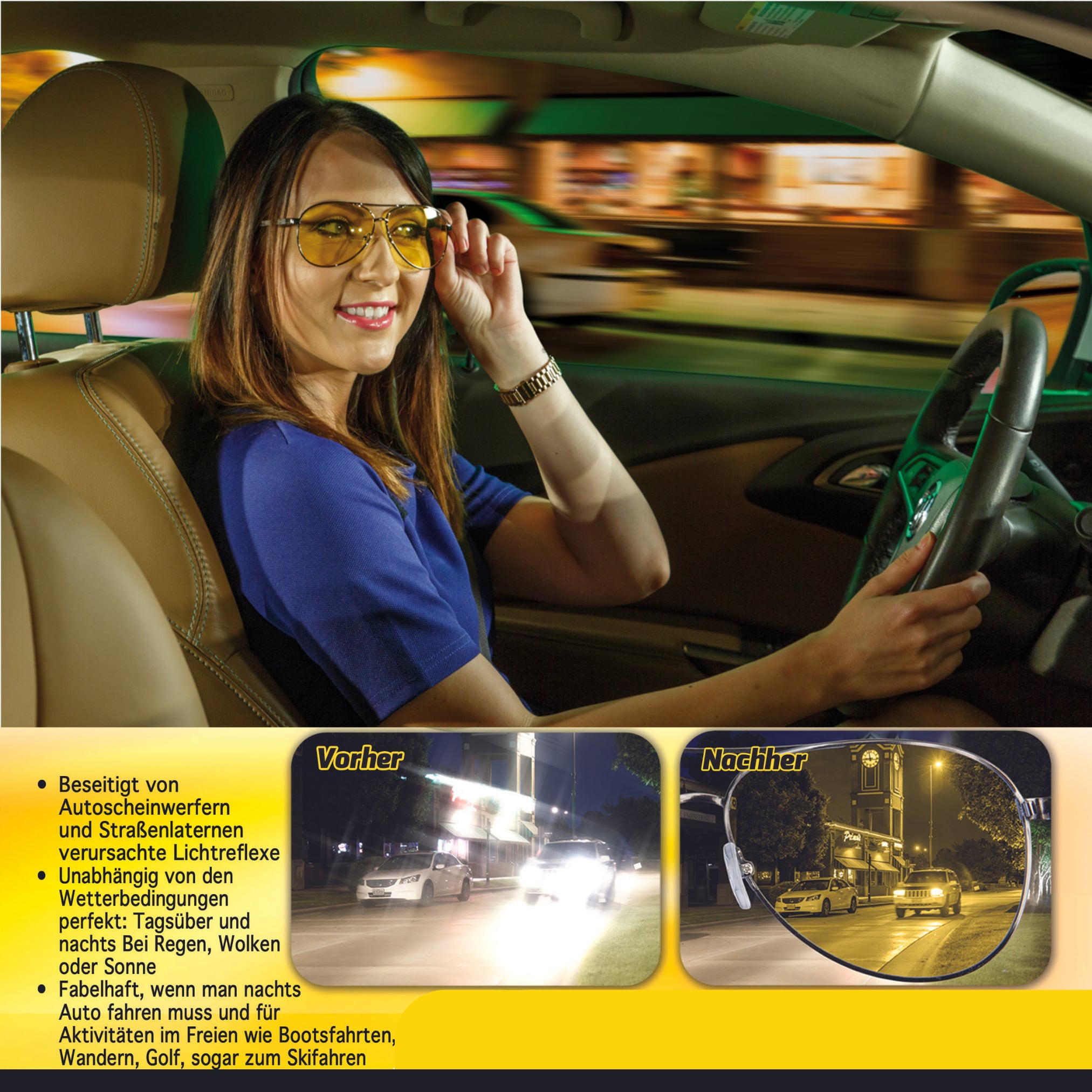 Hey, fährst du oft nachts Auto und wirst von den Scheinwerfern der Gegenfahrzeuge geblendet? Diese Nachtsichtbrille ist dein Retter in der Nacht! Mit den speziellen gelben polarisierten Gläsern reduzierst du die Blendung effektiv - siehst klarer und ermüdest weniger! Super praktisch: Du kannst sie einfach über deiner normalen Brille tragen - perfekt für Brillenträger! Der leichte TR90-Rahmen sitzt bequem und die kratzfesten TAC-Gläser halten was aus. Die großen Gläser geben dir ein breites Sichtfeld und schützen optimal. Aber nicht nur nachts super - auch bei Nebel, Regen oder bewölkten Tagen verbessert sie deine Sicht! Ideal für Autofahrer, Motorradfahrer, Radfahrer - eigentlich für jeden, der bei schlechten Lichtverhältnissen unterwegs ist. Mehr Sicherheit für dich und andere - das ist doch ein No-Brainer, oder?