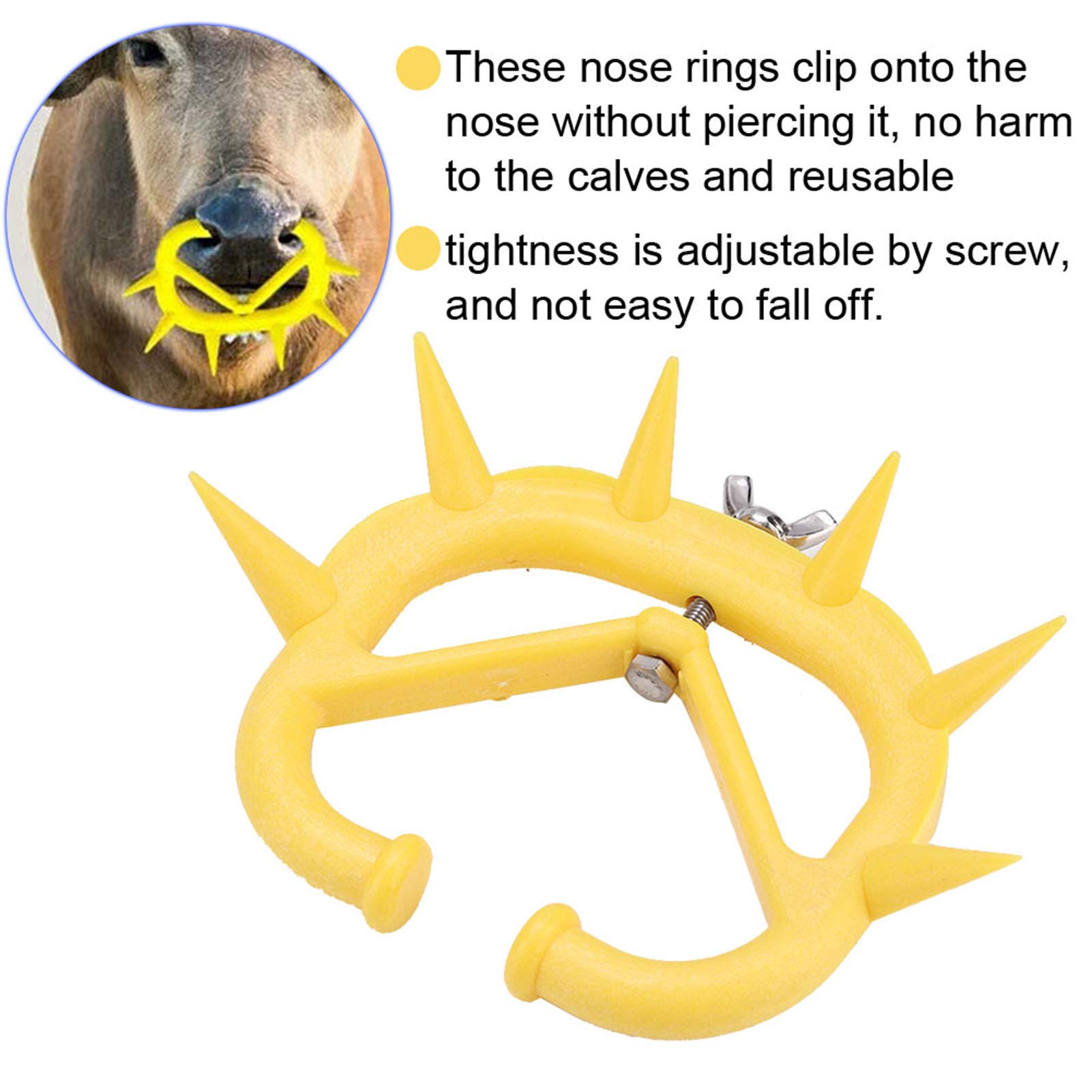 Für die Kälber-Entwöhnung! Diese Nasenringe helfen beim Absetzen vom Säugen. 10 Stück im Set, aus robustem Kunststoff, gelb. Mit Stacheln, aber schonend - ohne die Nase zu durchbohren. Verstellbar durch Schraube, fällt nicht leicht ab. Reduziert Stress beim Absetzen, verhindert gegenseitiges Lecken. Einfach zu reinigen, wiederverwendbar. Wichtiges Zubehör für jeden Landwirt!