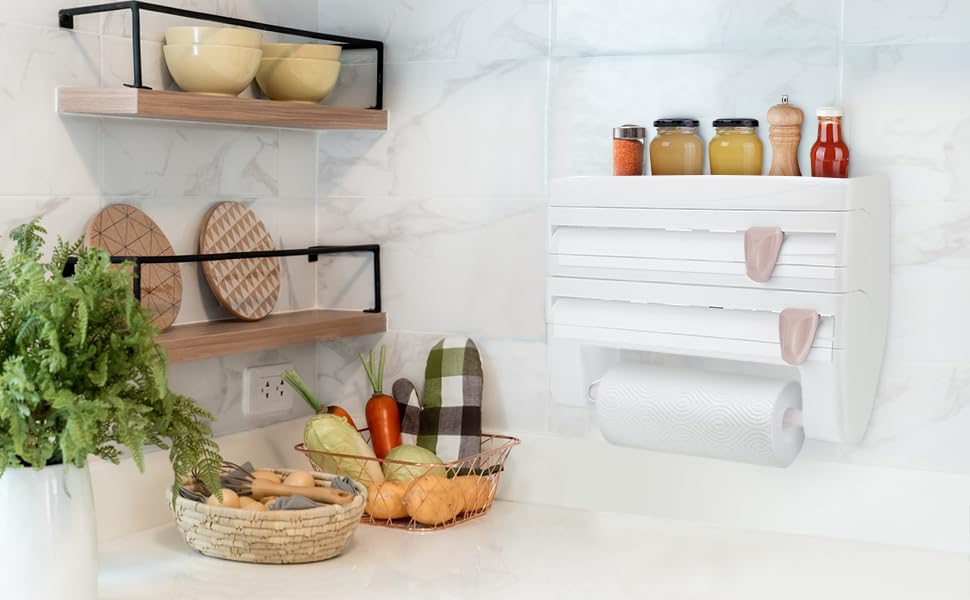 Schluss mit dem Chaos in der Küche! Dieser coole Halter bringt Ordnung in deine Folien und Küchentücher. Einfach an die Wand schrauben oder kleben - mit den mitgelieferten Schrauben und starkem Klebeband geht das ratzfatz. Der Halter nimmt Rollen bis 28cm Durchmesser auf und hat integrierte Messerklingen für saubere, gerade Schnitte. Das geniale Design: Die Folienenden schauen immer etwas raus, damit du sie beim nächsten Mal leicht erwischst. Und die scharfen Klingen sind sicher versteckt - perfekt für Haushalte mit Kindern! Aus stabilem ABS-Material in Khaki, Weiß oder Grau erhältlich. Maße: 39x10x24cm - passt auch in kleine Küchen. Endlich alles ordentlich an einem Platz: Alufolie, Frischhaltefolie und Küchenrolle. Macht deine Küche sofort aufgeräumter und praktischer!