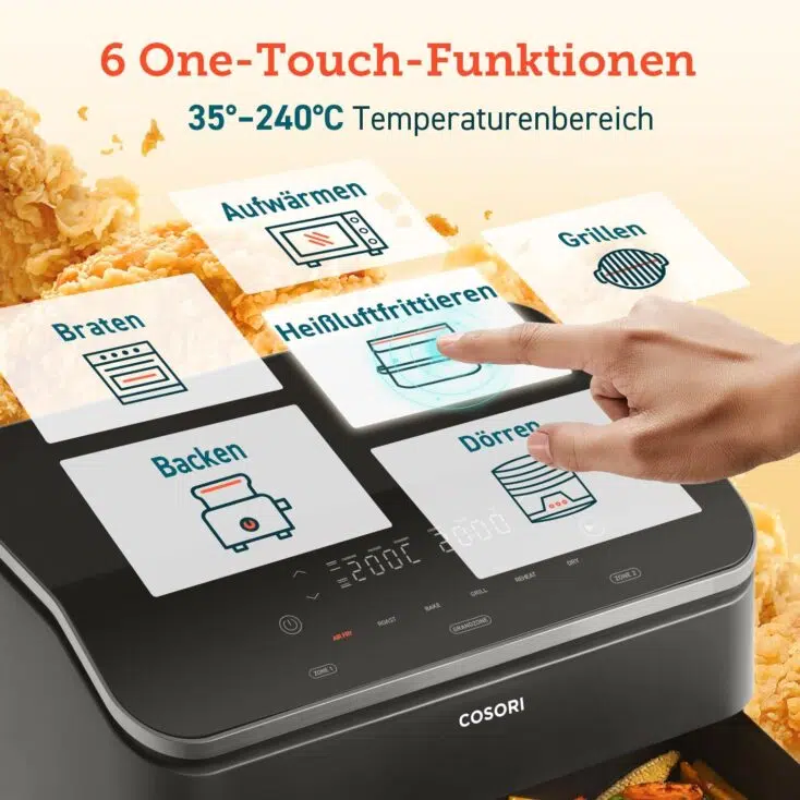Schluss mit lästigem Fettspritzern und aufwendiger Reinigung! Dieser magnetische Spritzschutz von LUMOOM ist die perfekte Lösung für deine Cosori Heißluftfritteuse. Speziell entwickelt für die Modelle XXL 8.5L und Dual Blaze TwinFry 10L, fängt der Spritzschutz bis zu 95% aller Fettspritzer ab und schützt so die Heizspirale vor Verschmutzung. Die vier starken Magnete sorgen für eine sekundenschnelle Montage - einfach anheften und schon kann's losgehen. Das feinmaschige Edelstahl-Gitter ermöglicht eine ungehinderte Luftzirkulation, sodass deine Speisen weiterhin perfekt knusprig werden. Der Silikonrand schützt deine Hände vor Verbrennungen und verhindert Kratzer am Fritteusenkorb. Nach dem Gebrauch einfach mit Spülmittel abwaschen - super hygienisch und schnell wieder einsatzbereit. Im Lieferumfang sind 2 Spritzschütze enthalten, sodas du immer einen Ersatz parat hast. Mach dir das Leben leichter und genieße das Kochen ohne lästige Putzarbeit!