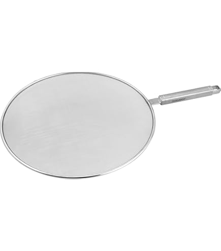 Endlich ohne Fettspritzer kochen! Dieser praktische Spritzschutz aus Edelstahl hält die fiesen Spritzer zuverlässig in der Pfanne. Das feine Gitter lässt Dampf raus, aber kein Fett - deine Küche bleibt sauber. Mit dem Holzgriff verbrennst du dir nicht die Finger und kannst den Schutz sicher handhaben. Es gibt ihn in vier Größen von 21cm bis 33cm Durchmesser - für fast jede Pfanne die richtige Größe. Perfekt fürs Braten von Fisch, Steak, Speck oder Fleischbällchen. Einfach auf die Pfanne legen und entspannt kochen, ohne hinterher stundenlang putzen zu müssen. Deine Haut und deine Küche sagen Danke! Ein Muss für alle, die gerne braten aber das Chaos danach hassen.
