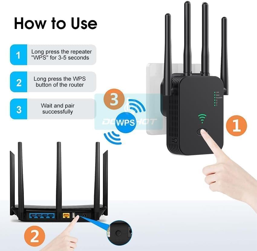 • WLAN Verstärker 3600 Sq.ft - WLAN Repeater Mit Ethernet Port