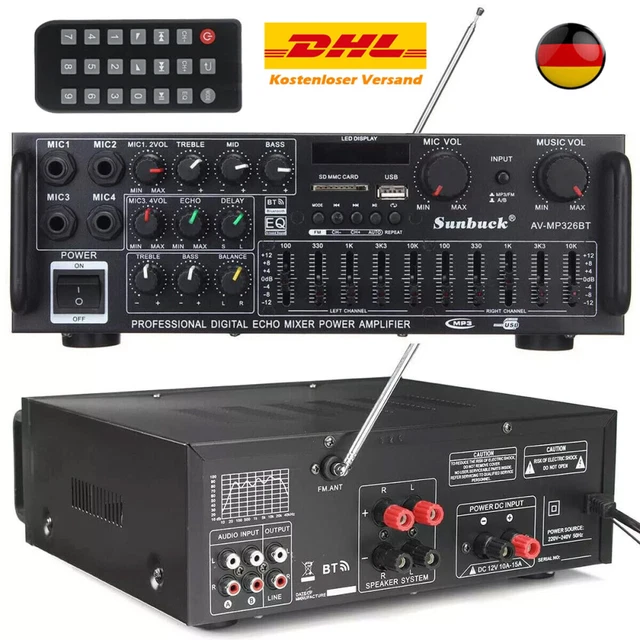Kraftvoller Sound in klein! Dieser HiFi-Verstärker bringt 20W+20W+40W Leistung - da wackeln die Wände! Mit Bluetooth - einfach mit Smartphone oder Tablet verbinden. Der 2.1-Kanal mit Subwoofer-Ausgang gibt fetten Bass! Nur 150x117x38mm klein - passt überall hin. Mit Bass- und Höhenregler - stell Dir Deinen perfekten Sound ein! Inklusive Netzteil - sofort einsatzbereit. Perfekt für Zuhause, Büro oder unterwegs. Macht aus Deinen Lautsprechern ein Klangwunder! Einfach anschließen und von hochwertigem Sound profitieren! Der ideale Verstärker für jeden Musik-Fan!