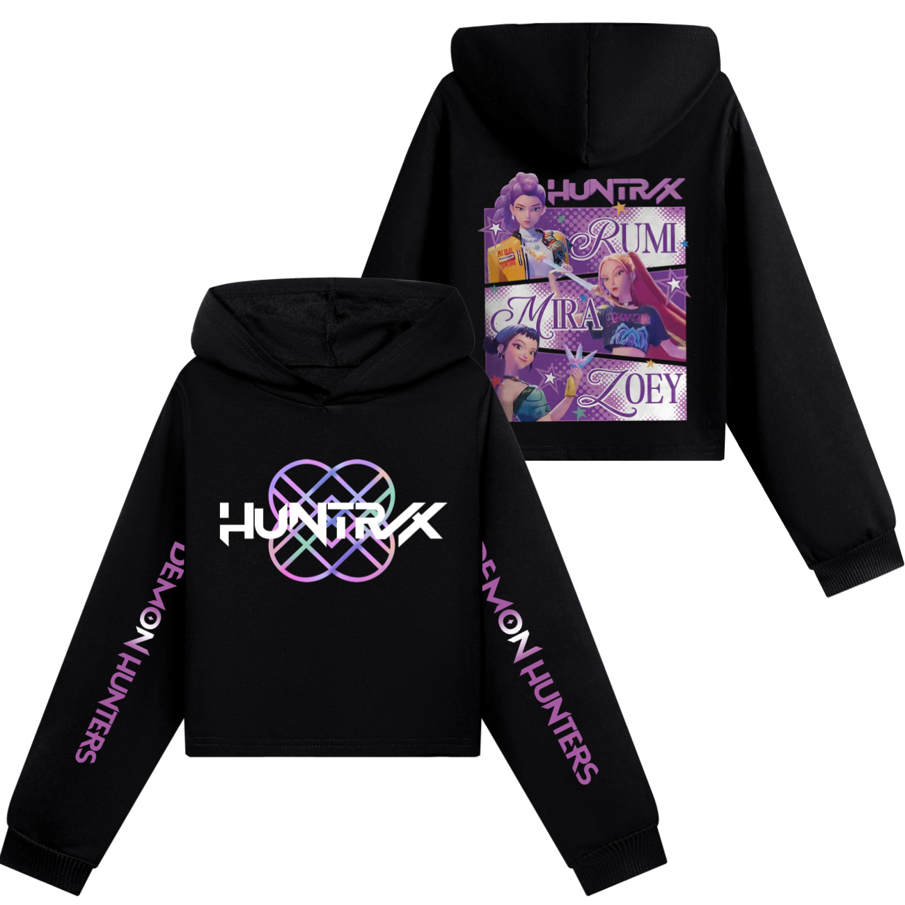 Dein Kind ist total im Anime- und K-Pop-Fieber? Dann ist dieser Huntrix Hoodie genau das Richtige! In coolem Türkis mit stylischem Manga-Design auf dem Rücken und Demon Hunters-Schriftzug auf den Ärmeln. Aus weichem Sweatshirt-Stoff gefertigt, super bequem und in lockerer Passform. Mit praktischer Kapuze, Kordelzug und Kängurutasche vorne - einfach alles dabei, was einen guten Hoodie ausmacht. Die gerippten Bündchen an Ärmeln und Saum sorgen für perfekten Sitz. Ob für den Schulalltag, zum Spielen oder für besondere Anime-Events - damit steht dein Kind garantiert im Rampenlicht. Das coole Design kombiniert japanische Anime-Ästhetik mit moderner K-Pop-Kultur. Einfach anziehen und sich wie der größte Fan fühlen! Wäscht sich auch super und behält seine Form - also ein langlebiger Begleiter für kleine Anime-Fans.