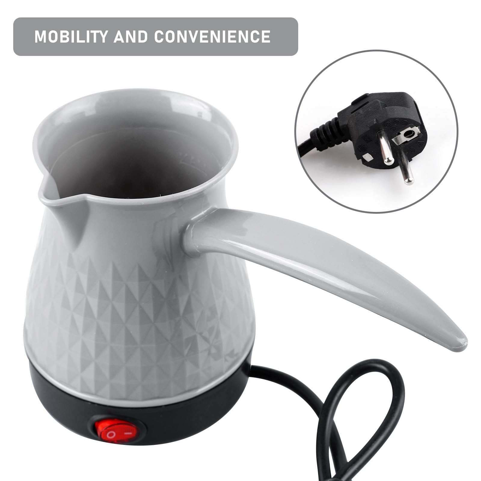 Dieser stylische Espressokocher von BORDEAG macht türkischen Kaffee zum Kinderspiel! Mit 800W Leistung und 500ml Fassungsvermögen bereitet er blitzschnell 3-4 Tassen köstlichen Kaffee zu. Aus rostfreiem Stahl gefertigt, ist er nicht nur langlebig, sondern auch super einfach zu reinigen. Das praktische Anti-Trockenbrenn-System schützt vor Betrieb ohne Wasser - einfach sicherer! Perfekt für zu Hause, aber auch leicht genug für Camping-Ausflüge oder unterwegs. Einfach einschalten und in wenigen Minuten genießt du authentischen türkischen Kaffee, Espresso oder andere Heißgetränke. Ein Must-have für alle Kaffeeliebhaber!