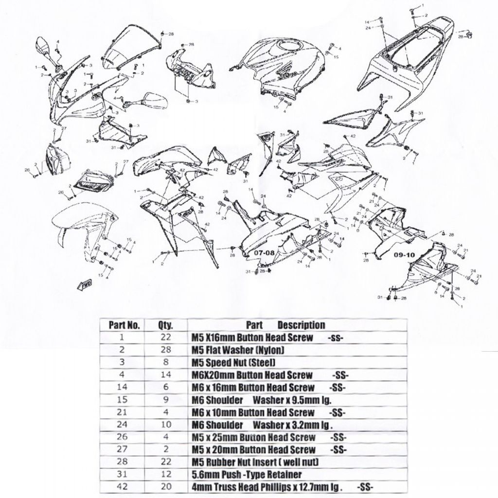 Passgenaues Schrauben-Set für deine Kawasaki GPZ900R! Speziell entwickelt für die Modelle von 1984 bis 1996. Enthält alle notwendigen Schrauben, Muttern und Befestigungsclips für Verkleidung und Windschutzscheibe. Aus hochwertiger Aluminiumlegierung in schwarz - wasser- und ölbeständig, robust und langlebig. Mit empfohlenem Drehmoment: M5 mit 7 Nm, M6 mit 9 Nm. Die Schrauben verblassen nicht, lösen sich nicht leicht und verursachen keine ungewöhnlichen Geräusche. Einfache Montage - das schlichte Design verleiht deinem Motorrad einen cleanen Look. Perfekt um beschädigte oder verlorene Originalteile zu ersetzen. Alles gut verpackt in praktischen Kartons - einfach zu lagern und zu transportieren. Spare dir die Suche nach einzelnen Teilen - hier ist alles dabei, was du brauchst. Mach deine GPZ900R wieder komplett und fahr sicher, dass alles bombenfest sitzt. Ein Muss für jeden GPZ900R-Besitzer!