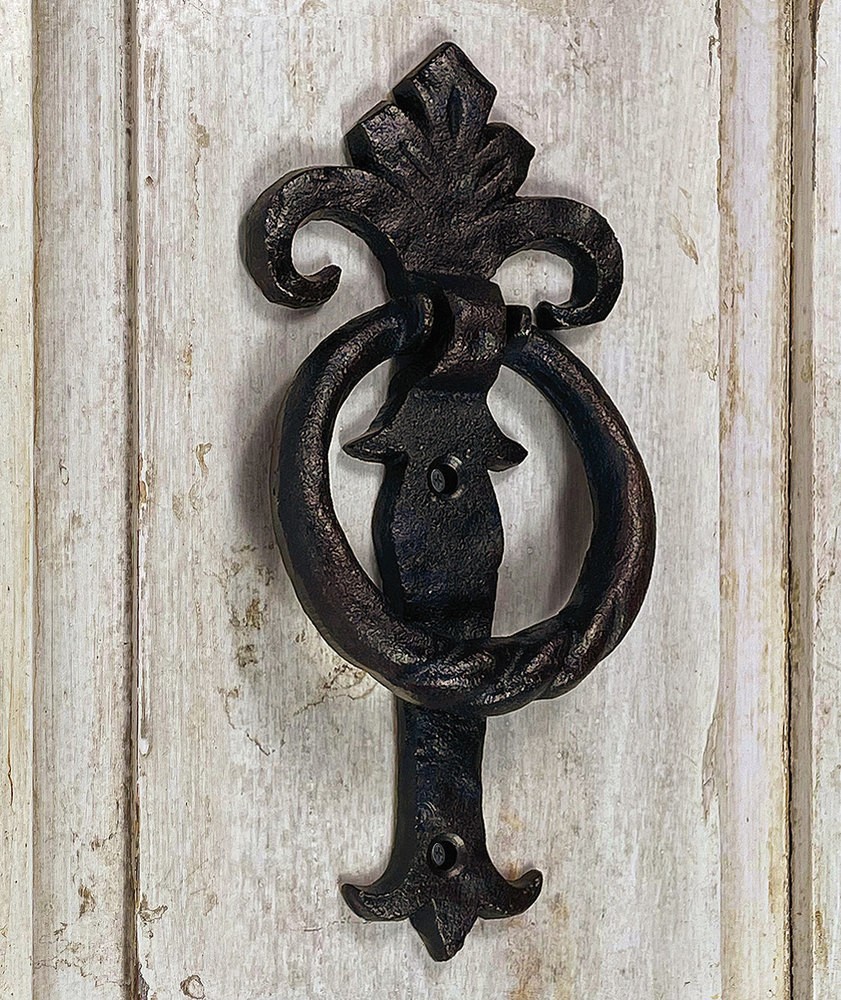 Begrüße deine Gäste mit stilvollem Klopfen! Dieser Türklopfer aus massivem Gusseisen verleiht deiner Haustür sofort rustikalen Charme. In warmem Braunton mit authentischer Vintage-Optik. Mit 18,5cm Länge ist er ein imposanter aber dekorativer Blickfang. Die robuste Verarbeitung garantiert jahrelange Freude bei jedem Wetter. Einfach zu montieren und pflegeleicht. Ob an einer alten Holztür oder modernen Haustür - dieses Accessoire verleiht jedem Eingang Persönlichkeit und Willkommens-Atmosphäre. Ein zeitloses Stück Handwerkskunst das Geschichten erzählt. Hol dir ein Stück Tradition für dein Zuhause!