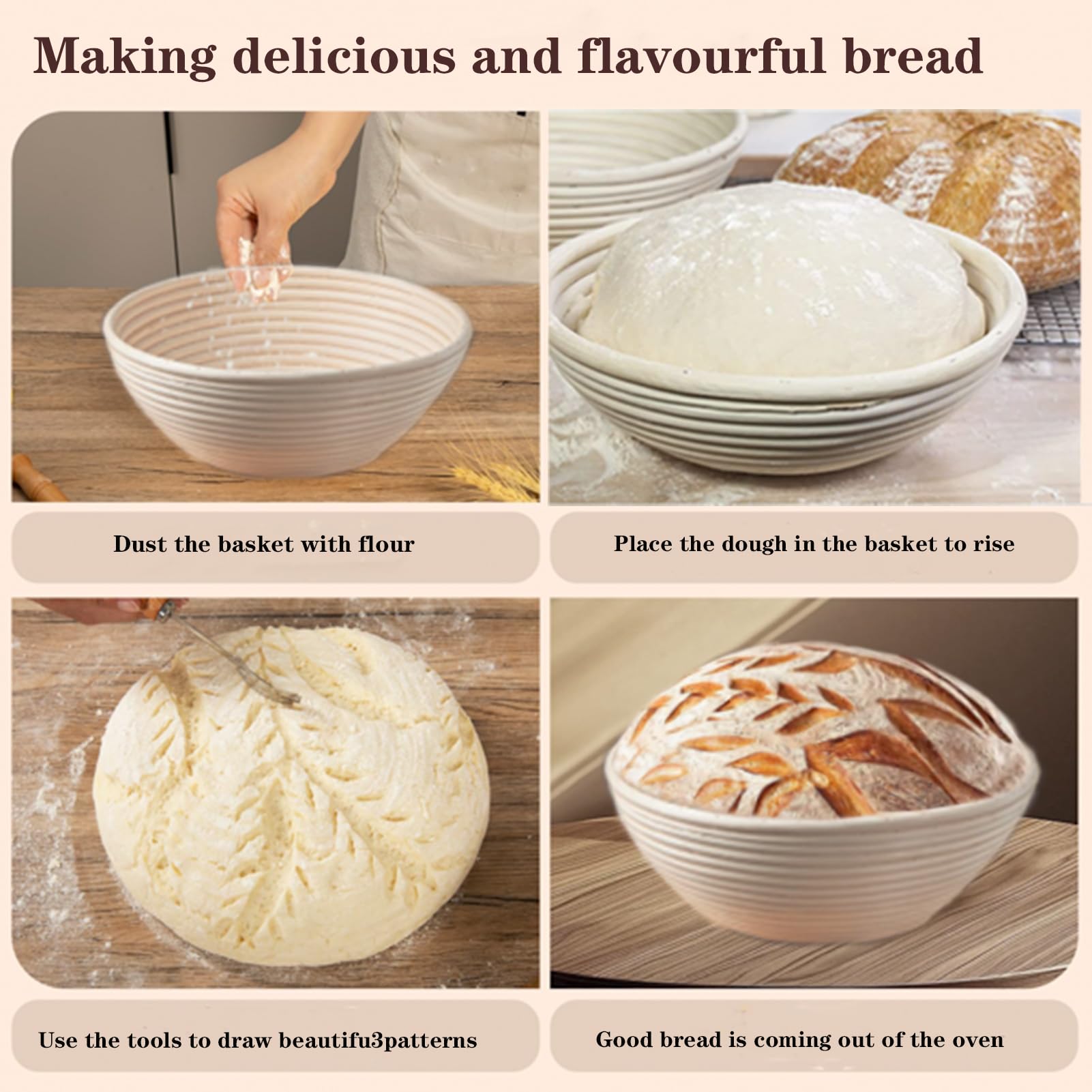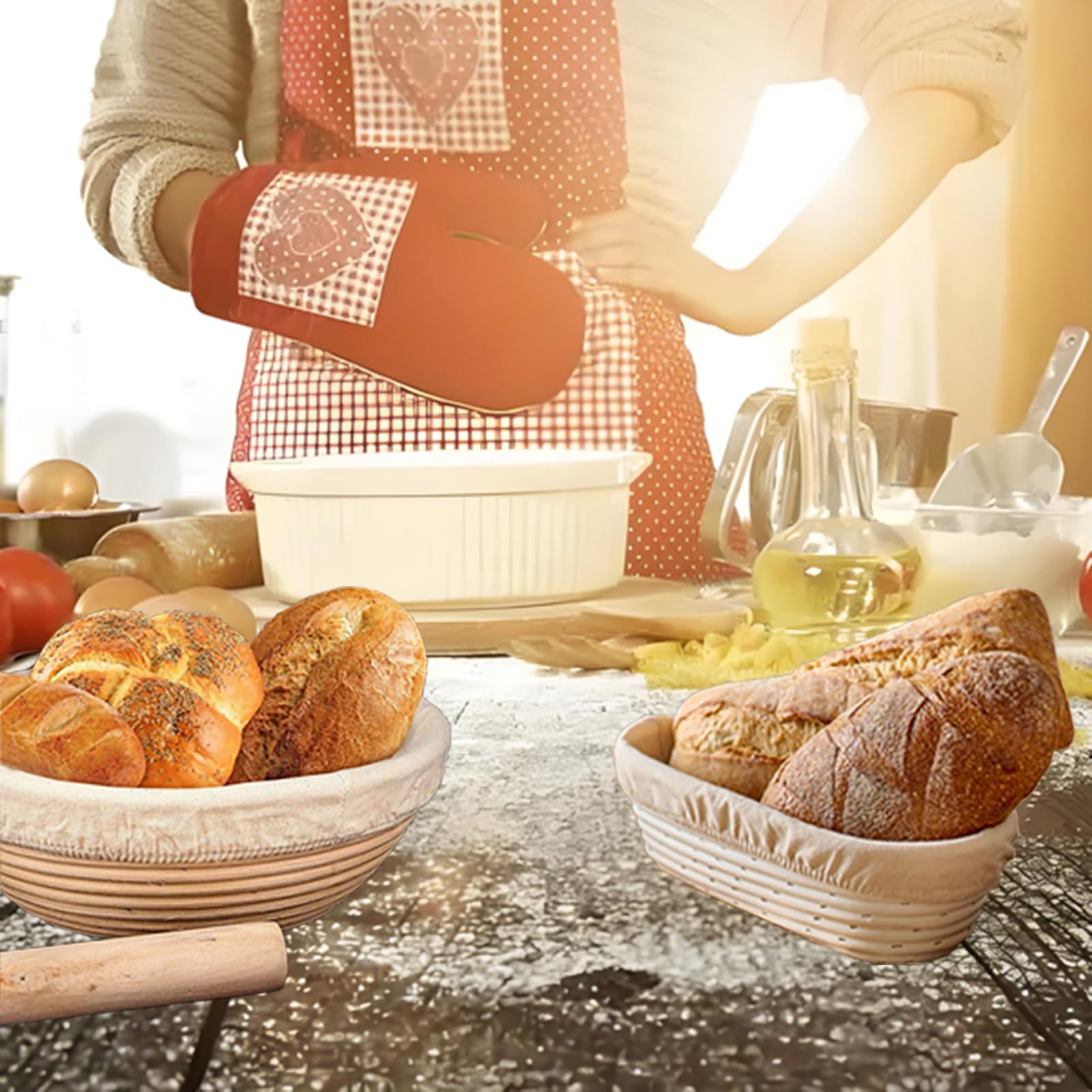 Hey Brot-Bäcker! Willst du perfektes Brot backen wie ein Profi? Dieses CHWNIBAY Gärkorb-Set ist genau das Richtige für dich! Der 23 cm große Gärkorb aus 100% natürlichem Rattan sorgt für optimale Luftzirkulation und Feuchtigkeitsverteilung - so kriegst du eine knusprige Kruste und eine super Textur. Im Set ist alles dabei, was du brauchst: Gärkorb mit dickem Leinenfutter, Teigmischer, Teigspatel, Brotschneider mit 5 Klingen, Messbecher und Reinigungsbürste. Das Leinenfutter hilft dem Teig, seine Form zu behalten und gleichmäßig aufzugehen. Die Reinigung ist super easy - einfach mit der Bürste ausfegen. Egal ob du Anfänger oder erfahrener Bäcker bist, mit diesem Set gelingt dir jedes Brot. Perfekt für 2 Pfund (900g) Teig. Hol dir das komplette Brotback-Erlebnis und genieße den Duft von frischem, selbstgebackenem Brot!