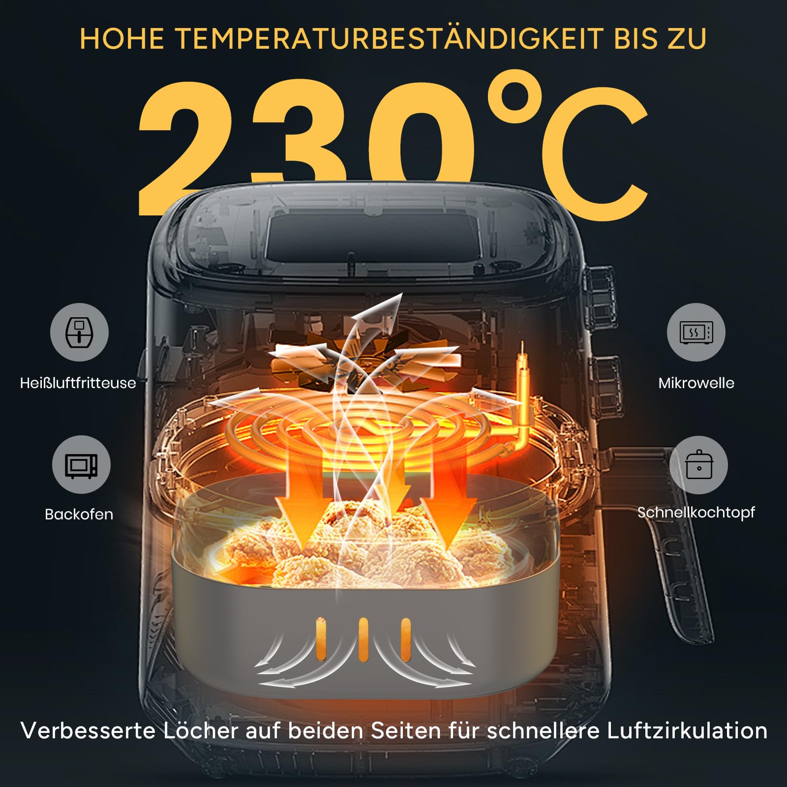 Perfekte Ergebnisse in der Heißluftfritteuse garantiert! Diese praktische Silikonform mit 20 cm Durchmesser macht das Frittieren zum Kinderspiel. Die speziellen Luftlöcher sorgen für optimale Zirkulation - so werden Pommes, Gemüsechips und Gebäck gleichmäßig knusprig, ohne dass du wenden musst. Aus BPA-freiem Silikon, hitzebeständig bis 230°C und komplett geschmacksneutral. Die Antihaft-Oberfläche sorgt dafür, dass nichts anklebt und die Reinigung super einfach ist. Besonders praktisch: Sie passt für die meisten 5,5-6,5 Liter Fritteusen und kann auch im Backofen und Mikrowelle verwendet werden. Im Lieferumfang sind sogar hitzebeständige Handschuhe enthalten! Einfach zusammenfalten und platzsparend verstauen. Tipp: Nach dem Auspacken erstmal 5 Minuten bei 180°C in der Fritteuse erhitzen - dann stellt sich die Originalform wieder ein. Nie wieder Backpapier kaufen!