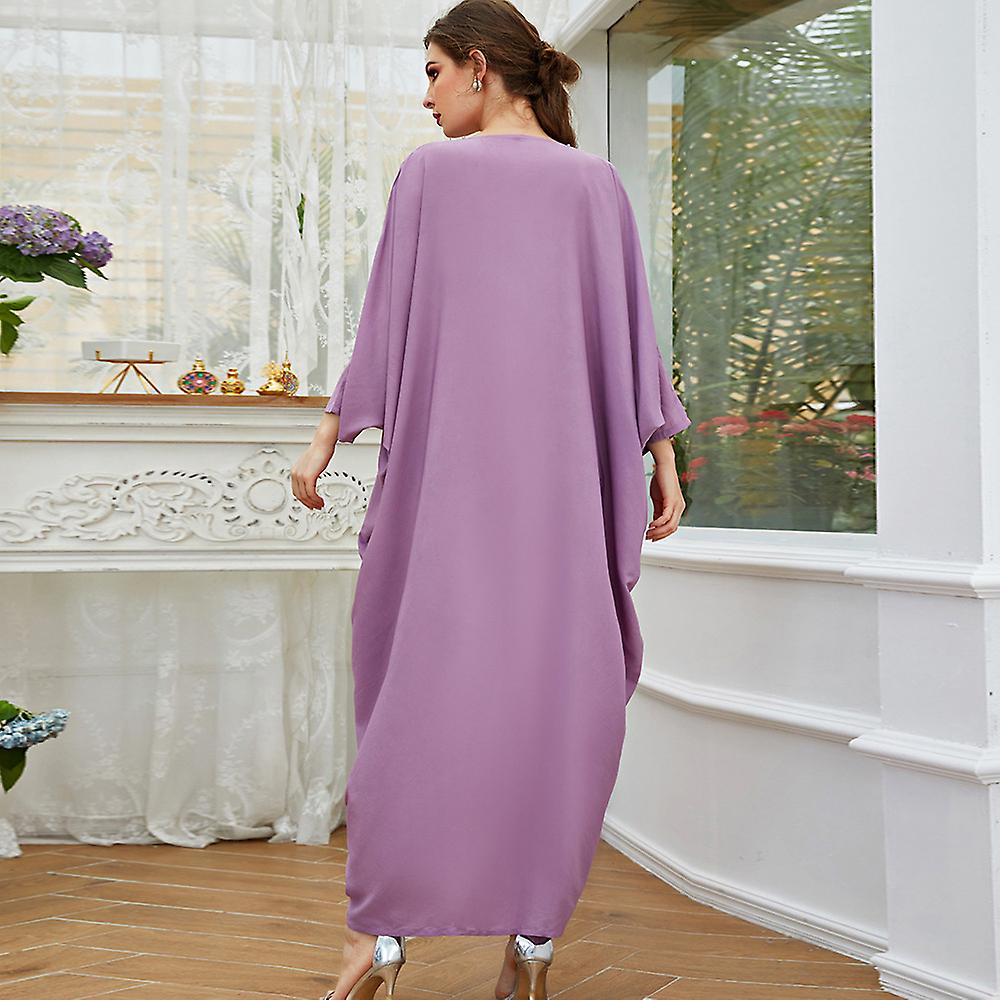 Dieses elegante Abaya-Kleid ist perfekt für moderne Muslima! Aus glänzendem Satinstoff mit trendigen Batwing-Ärmeln. Der V-Ausschnitt und der Stehkragen sehen super stylisch aus. Bodenlang für volle Bedeckung - ideal für Gebet, Eid oder besondere Anlässe. Mit verstecktem Reißverschluss hinten, leicht an- und auszuziehen. Das Blumenmuster und die Fransen-Details machen es zu einem echten Hingucker. Perfekt für Freizeit, Einkaufen, Hochzeiten oder Urlaub. Weich, fließend und hautfreundlich - Komfort und Style in einem!