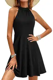 Wow, dieses Sommerkleid ist einfach traumhaft! Aus weichem, atmungsaktivem Polyester - perfekt für heiße Tage. Das Neckholder-Design betont deine Schultern und macht eine super Figur. A-Linie Schnitt mit plissierten Details - lässig und elegant zugleich. Kombinier es mit einem Gürtel für mehr Taillenbetonung oder mit Strohhut und Sandalen für den perfekten Sommer-Look. Ideal für Dates, Cocktailpartys, Strandurlaub oder festliche Anlässe. Ob Frühling, Sommer oder früher Herbst - mit diesem Kleid bist du immer perfekt angezogen und fühlst dich dabei super comfortable!