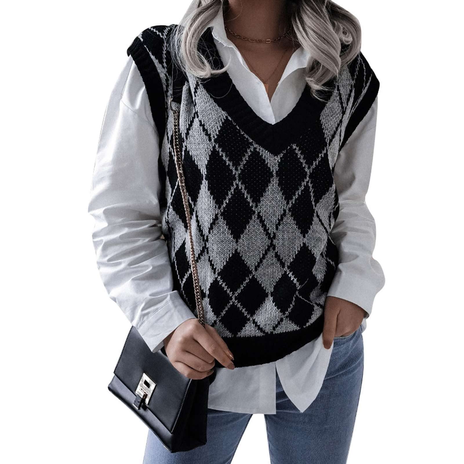 Suchst du eine lässige Weste, die dich stylisch warm hält? Diese ärmellose Strickweste mit V-Ausschnitt ist genau das Richtige! Aus weichem Polyester-Acryl-Gemisch fühlt sie sich super gemütlich an und ist dabei angenehm atmungsaktiv. Die klassische Karo-Optik im Retro-Stil ist total im Trend und passt zu Jeans, Leggings, Röcken oder Hosen. Der V-Ausschnitt ist dezent und vielseitig kombinierbar - ob über einem Shirt, Bluse oder sogar einem dünnen Pullover. Perfekt für die Übergangszeit im Herbst und Frühling, aber auch im Winter als zusätzliche Schicht unter der Jacke. Die Strickqualität ist hochwertig und elastisch, sitzt also perfekt ohne zu zwicken. Wichtig: Unsere Größen orientieren sich an asiatischen Maßen, schau also vor dem Kauf unbedingt in die Größentabelle! Ein Must-Have für jede modebewusste Frau - bestell sie und komplettiere deinen Look mit diesem stylischen Piece!