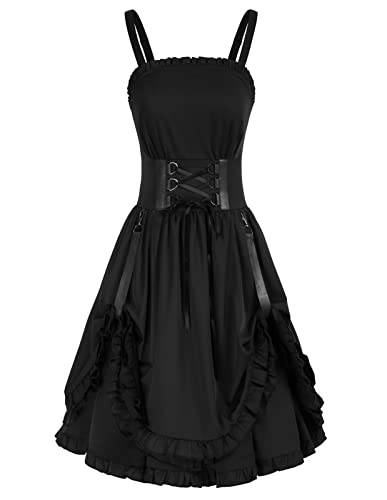 • Mittelalter Kleid Damen Gothic - Ärmelloses Retro Ballkleid Mit Korsett