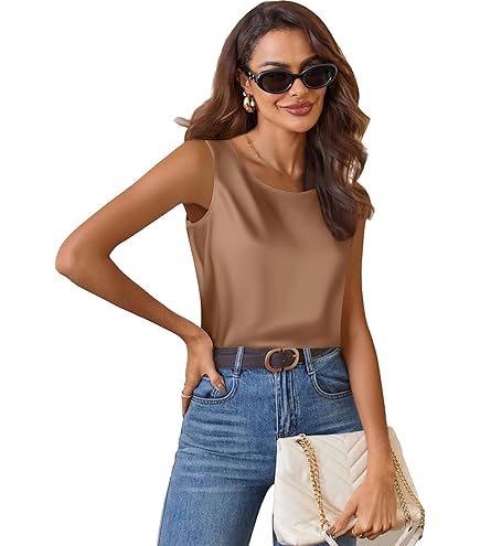 • Damen Satin-Tanktop Mit V-Ausschnitt - Ärmelloses Schulterfrei Oberteil Für Elegante Anlässe