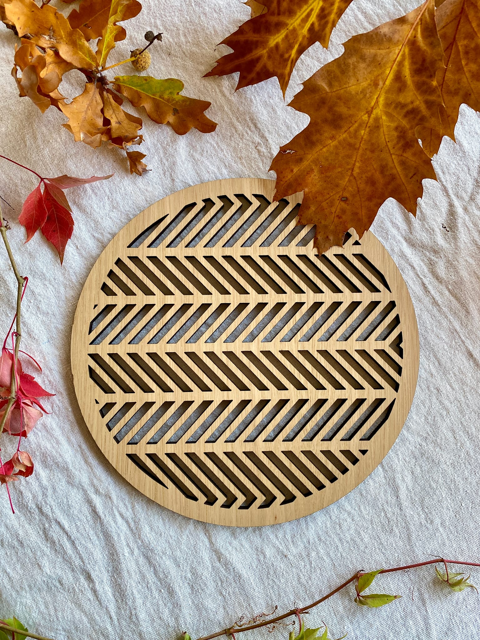 Total niedliche Holzuntersetzer in Baumform! Das Set besteht aus 3 blattförmigen Untersetzern und einem stabilen Ständer - alles aus 100% Buchenholz. Die cleveren Teile lassen sich zusammenfalten und bei Bedarf einfach aufklappen. Jeder Untersetzer hat 20cm Durchmesser und ist 1,2cm dick - perfekt für Teller, Töpfe, Gläser oder Pfannen. Die Oberfläche ist mehrmals poliert, super glatt und kratzt nicht auf dem Tisch. Das natürliche Holz macht sich toll in jeder Küche - besonders weihnachtlich! Einfach ein hübsches und praktisches Accessoire für den täglichen Gebrauch oder als Geschenk.