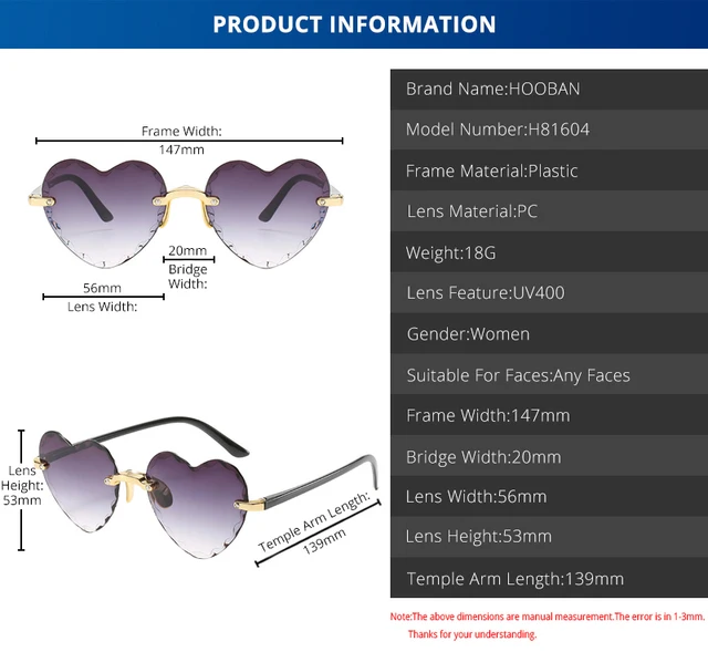 Boah, diese herzförmige Sonnenbrille ist ja mal total crazy und wunderschön! Das retro Design ohne Rand sieht einfach mega aus und ist was Besonderes. Die Gold-Bügel aus Metall sind super leicht und bequem zu tragen. Es gibt verschiedene Farben: Knalliges Rot, sanften Gelb-Gradient oder traumhaften Blau-Rosa-Verlauf - für jeden Style was dabei! Die herzförmigen Gläser geben dir ein großzügiges Sichtfeld - sieht nicht nur gut aus, sondern ist auch praktisch. Perfekt für Festivals, Partys, Strand oder einfach für den Sommer in der Stadt. Die Bügelenden sind aus schwarzem Acetat - sitzen angenehm und rutschen nicht. Mit dieser Brille wirst du definitiv auffallen - im positiven Sinne! Ob zu Kleid, Jeans oder Sommer-Outfit - sie passt einfach immer und macht jedes Outfit besonders. Die Qualität ist gut - kein Billig-Plastik sondern richtige Verarbeitung. Einfach bestellen und den Sommer in vollen Zügen genießen - mit Style und Sonnenschutz! Damit bist du der Star auf jeder Party!