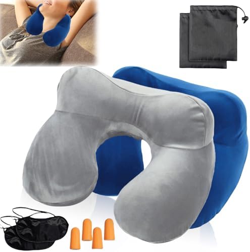 • Taiyongkang Aufblasbares Nackenkissen Reise - U-förmiges Travel Pillow Für Flugzeug & Auto, Blau