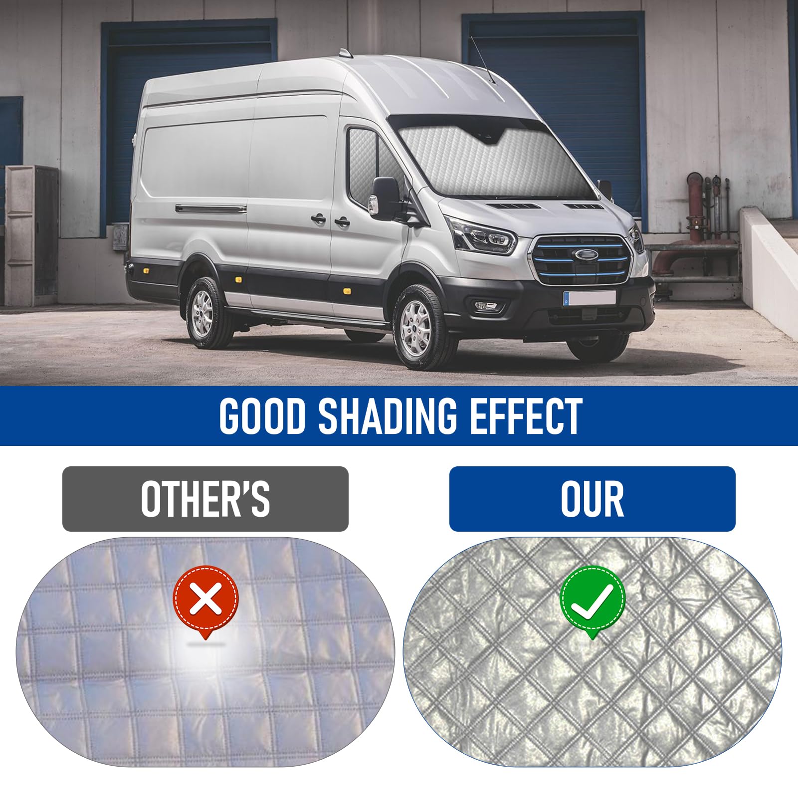 Schütze deinen Ford Transit (2000-2014) vor Hitze und Kälte! Dieses 3-teilige Thermomatten-Set deckt Front- und Seitenscheiben von innen ab. Das siebenlagige Material hält im Sommer die Hitze draußen und im Winter die Wärme drinnen. Deine Inneneinrichtung bleibt vor Sonnenschäden und Austrocknung geschützt! Einfach mit den mitgelieferten Saugnäpfen anbringen - kein Werkzeug nötig. Die Matten sorgen nicht nur für besseres Klima, sondern auch für mehr Privatsphäre beim Campen oder Übernachten. Wichtig: Beim Abnehmen die Saugnäpfe lösen, nicht an der Matte ziehen - so hält sie ewig! Perfekt für alle, die ihr Fahrzeug optimal schützen wollen. Einfach montieren und von besserem Raumklima profitieren - das ganze Jahr über!
