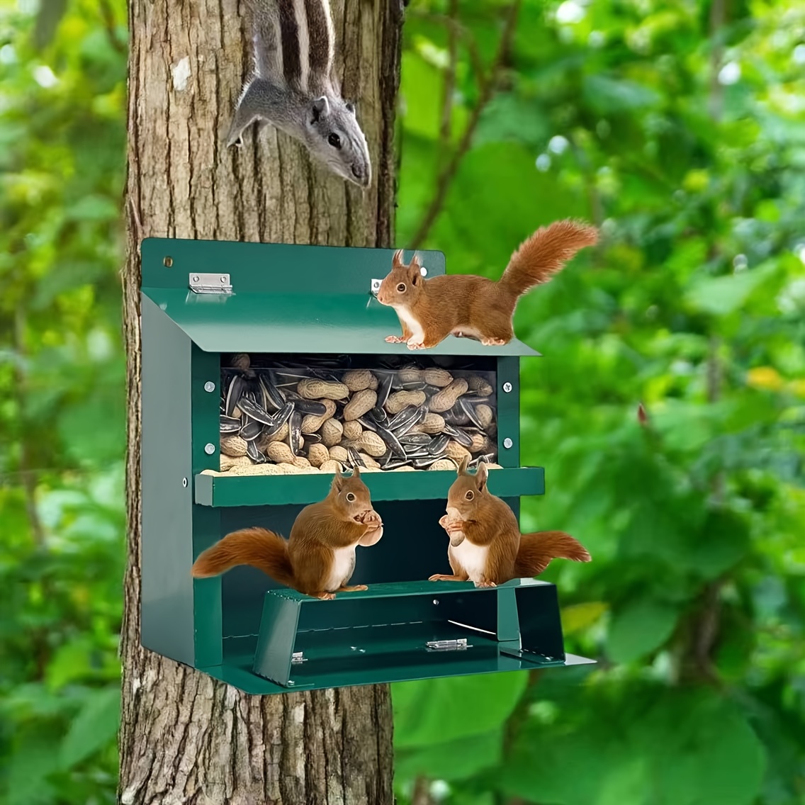 Dieser süße Eichhörnchen-Futterspender bringt Leben in deinen Garten! Aus massivem Holz - 35,2x12,8x24cm groß. Hochtemperatur-karbonisiert - extrem witterungsbeständig. Mit praktischem Rillendesign - Futter bleibt sicher drin. Einfach zu befüllen und zu reinigen. Perfekt für Eichhörnchen, Streifenhörnchen und andere Kleintiere. Macht deinen Garten zur tierischen Begegnungszone. Stabiler Stand auch bei Wind. Einfach aufhängen oder hinstellen. Beobachte die possierlichen Tierchen beim Fressen - Entspannung pur!