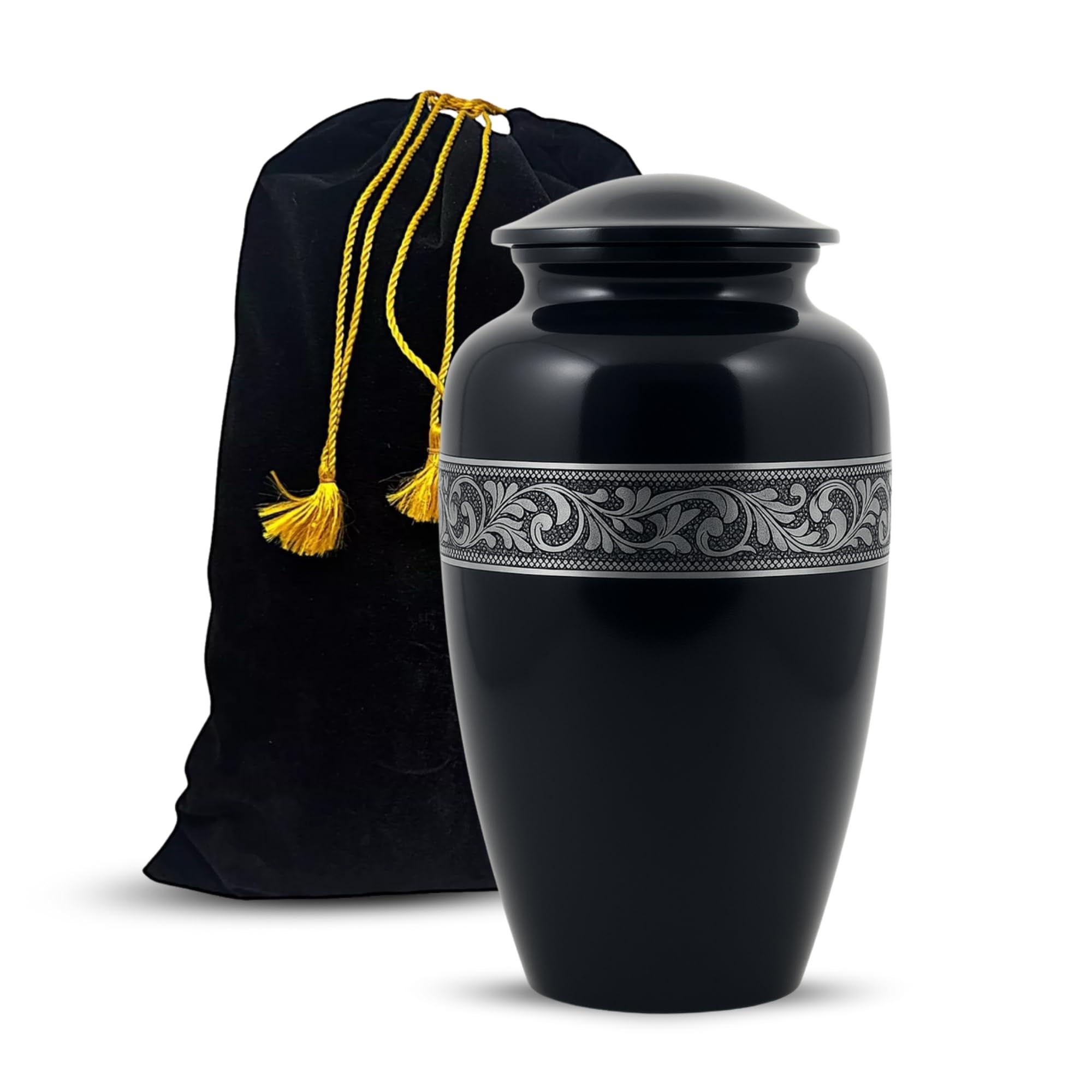 Eine würdige und schöne Aufbewahrung für deine Liebsten. Diese handgefertigte Aluminium-Urne mit floralem Design ist nicht nur elegant, sondern auch extrem langlebig. Mit den Maßen 16,5x16,5x26,7 cm bietet sie Platz für bis zu 200 Kubikzoll Asche - geeignet für Erwachsene mit einem Gewicht bis zu 90 kg. Der Schraubdeckel mit Gewinde sorgt für sicheren Verschluss, der Filzboden schont die Unterlage. Jede Urne wird im traditionellen Sandguss-Verfahren einzeln hergestellt, was ihr einen einzigartigen Charakter verleiht. Die gravierten Silberbänder machen jedes Stück zu einem Unikat. Einfach zu pflegen - einfach mit einem trockenen Tuch abwischen. Mit 100% Zufriedenheitsgarantie und schnellem Versand. Eine würdevolle und erschwingliche Lösung, um die Erinnerung an geliebte Menschen zu bewahren.