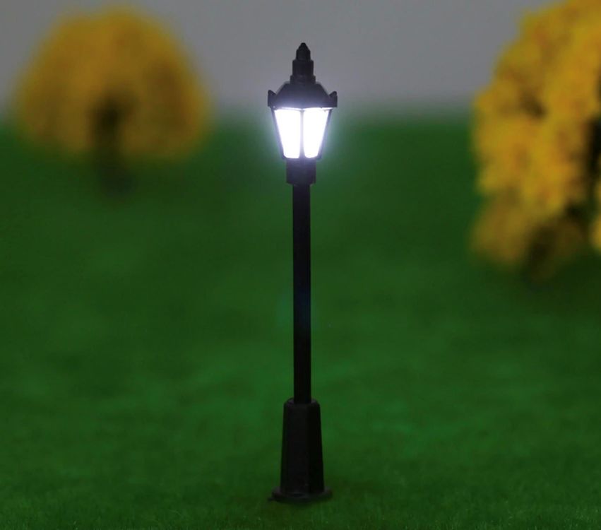 Bring Licht in deine Modellbahn-Stadt! Dieses Set mit 10 identischen HO-Laternen verwandelt deine Anlage im Maßstab 1:87 in eine lebendige Miniaturwelt. Jeder Lichtmast hat zwei LED-Leuchten und ist etwa 75mm hoch. In schwarz lackiert sehen sie super realistisch aus. Wichtig: Sie laufen mit 3V DC und brauchen etwa 0,12 Watt - am besten mit Vorwiderstand betreiben, damit die LEDs lange halten. Perfekt für Straßen, Bahnsteige oder Plätze. Einfach aufstellen, verkabeln und schon erstrahlt deine Miniaturstadt im warmen Licht. Ob für Anfänger oder Profi-Modellbauer - diese Laternen machen jede Anlage gleich viel professioneller. Ein Muss für alle, die ihre Modellbahn zum Leben erwecken wollen!