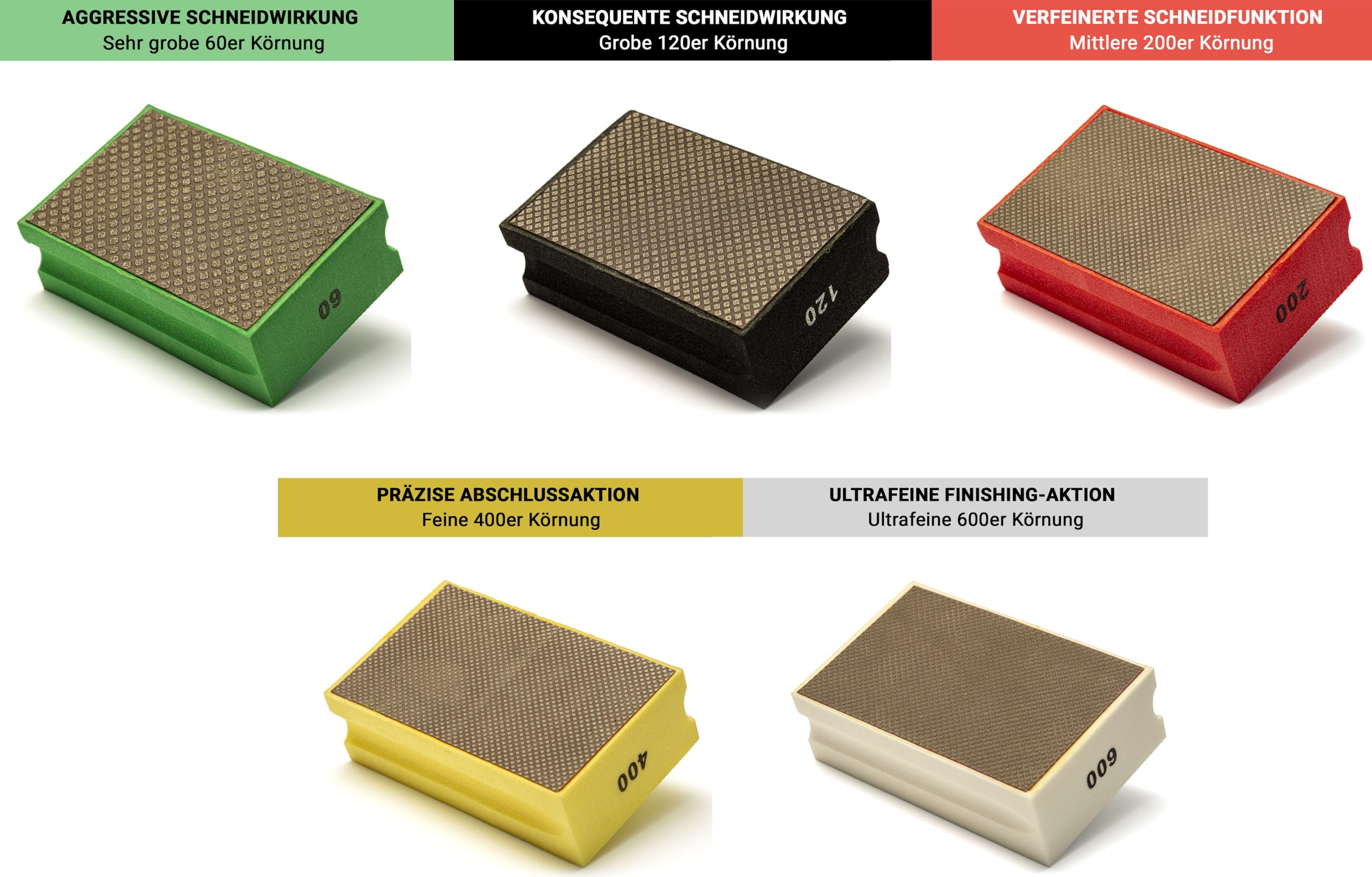 Boah, dieses 4-teilige Diamant-Schleifblock-Set ist ja mal richtig vielseitig! Mit den Körnungen 60#, 100#, 200# und 400# hast du für jede Arbeit den richtigen Schleifblock parat. Die roten, blauen, gelben und grünen Pads sind nicht nur hübsch anzusehen, sondern auch super praktisch: 60# für grobe Arbeiten an Schiefer und Fliesen, 100# für normale Fliesen, 200# für Glas und 400# fürs Feinpolieren. Das Material - Diamant auf elastischem Schwamm - ist extrem verschleißfest und hält ewig. Die seitliche Rille gibt dir super Halt und macht die Handhabung richtig easy. Ob du jetzt Kanten an Fliesen entgraten, Glas kanten oder Metall polieren willst - mit diesem Set kriegst du alles hin! Die Pads können immer wieder verwendet werden und sind sowohl für Profis als auch Hobby-Heimwerker ideal. Einfach in die Hand nehmen und loslegen - keine komplizierten Maschinen nötig! Perfekt für alle, die gerne selber machen und Wert auf saubere Kanten und Oberflächen legen.