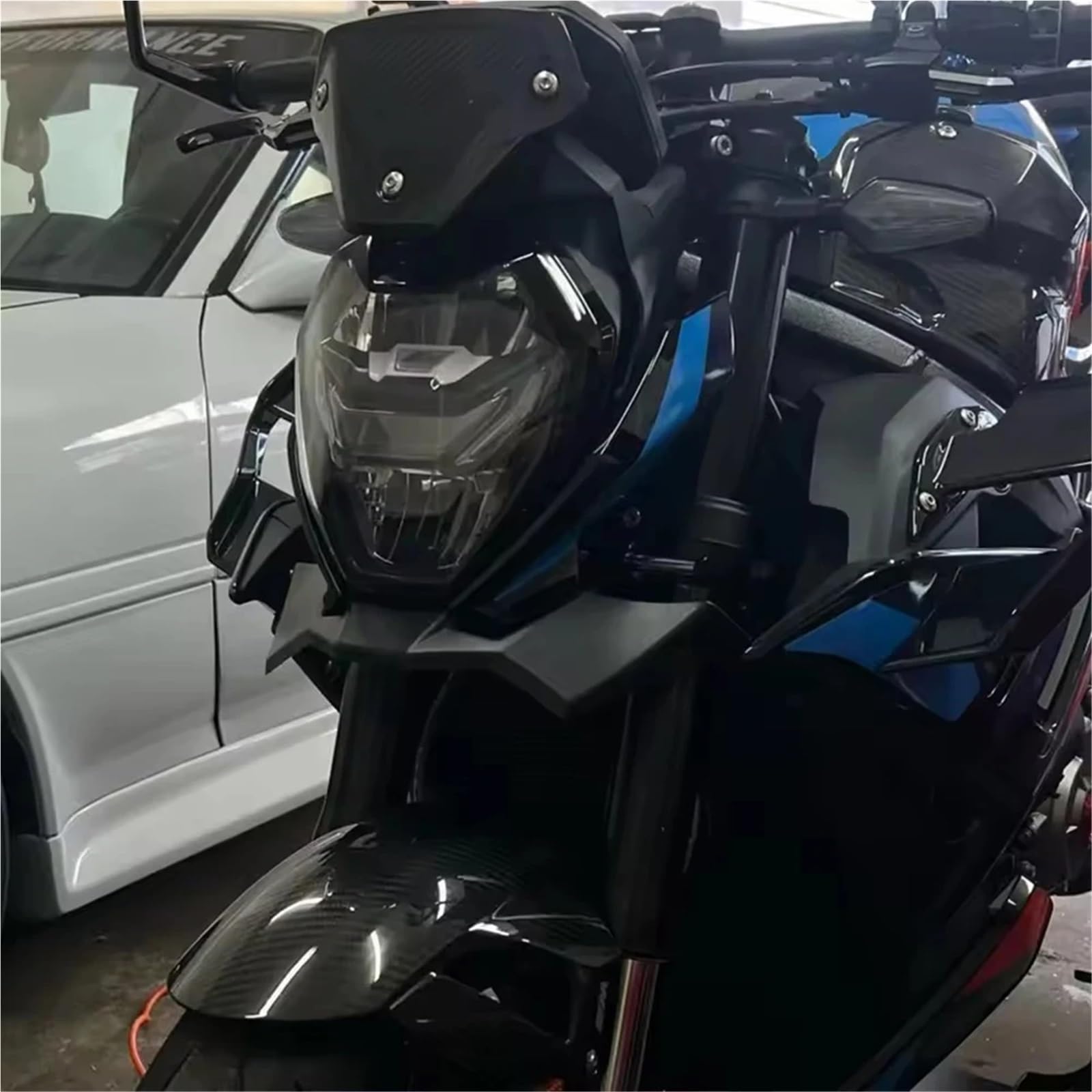 Boah, dieses Frontspoiler-Kit für deine BMW S1000R oder M1000R ist der absolute Hammer! Macht nicht nur optisch was her, sondern bringt auch richtig Performance. Der Spoiler leitet die Luft optimal zum Kühler und sorgt für satte 2 kg Abtrieb an der Vorderachse - das spürst du besonders bei schnellen Beschleunigungen und in Kurven. Aus robustem ABS + Eisenrahmen gefertigt, hält das Teil auch bei hohen Geschwindigkeiten bombenfest. Einfache Montage ohne dein Bike zu beschädigen. Für S1000R Modelle 2021-2024 und M1000R 2023-2024. Verfügbar in Schwarz oder Carbon Look - such dir deinen Favoriten aus! Mehr Stabilität beim Bremsen, bessere Kurvenlage und einfach ein aggressiveres Look. Für alle, die ihr Motorrad auf das nächste Level bringen wollen!