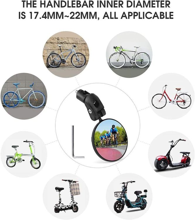 Sicherheit geht vor! Diese beiden Fahrradspiegel geben dir den perfekten Blick nach hinten - ohne den Kopf zu verdrehen. Perfekt für E-Bikes und normale Fahrräder mit Lenker von 17,4-22 mm Durchmesser. Die konvexe Linse bietet einen superweiten Blickwinkel und die 360-Grad-Verstellung sorgt für die optimale Position. Aus robustem ABS-Material mit Acryllinse und PC-Halterung - hält auch mal was aus! Einfache Montage mit dem beiliegenden Inbusschlüssel. Einfach Schutzfolie abziehen und los geht's. Schwarz sieht sportlich aus und passt zu jedem Bike. Mehr Sicherheit im Straßenverkehr - besonders wichtig in der Stadt oder auf Radwegen. Ein Must-Have für alle, die sicher unterwegs sein wollen!