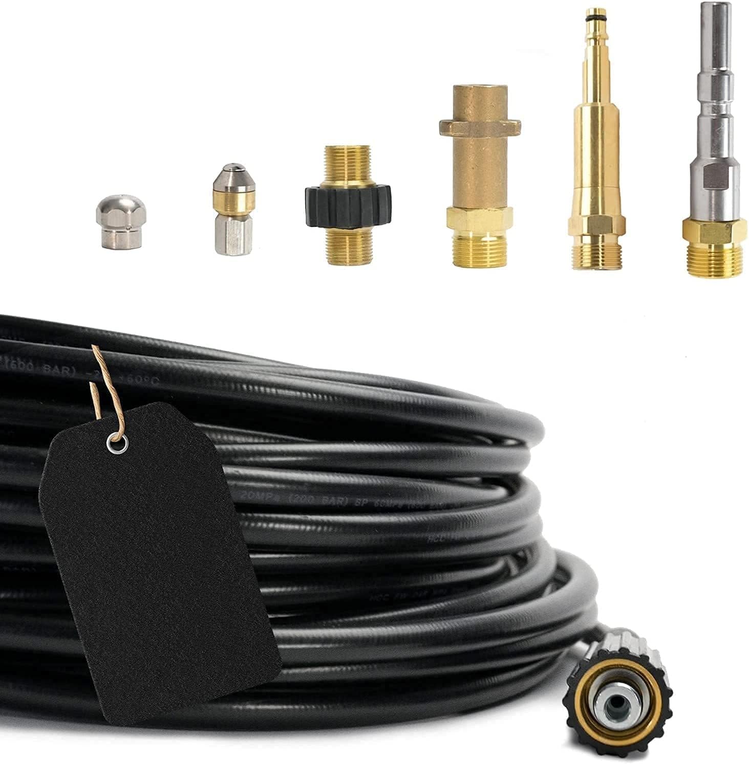Verstopfte Rohre? Dieses Rohrreinigungsschlauch-Set von M&M Smartek macht Schluss mit dem Ärger! Mit 25 Metern Länge und 220 bar Druckbeständigkeit kommst du auch an die hintersten Verstopfungen ran. Der DURAJET Schlauch hält sogar 150°C aus und ist abriebfest, chemikalienbeständig und wetterfest. Im Set sind 5 verschiedene Düsen dabei: rotierende Raketendüse, Spiralreinigungsdüse, zwei Bohrstrahldüsen und eine Turbo-Dreckfräse - für jede Verschmutzung die richtige Lösung. Passt auf Kärcher & Kränzle HD/HDS-Serien mit M22x1,5 IG-Anschluss. Mit beidseitigem Knickschutz für längere Haltbarkeit. Ob WC, Siphon oder Abflussleitung - damit wird jede Verstopfung Geschichte!