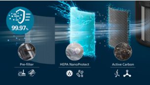 Frische Luft für dein Zuhause! Diese Ersatzfilter für Philips 900 Serie Luftreiniger sorgen dafür, dass dein Gerät wieder wie neu arbeitet. Das 2er-Pack enthält sowohl den H13 Aktivkohlefilter für Gerüche und Feinstaub als auch den Vorfilter für groben Schmutz wie Haare und Staubflusen.