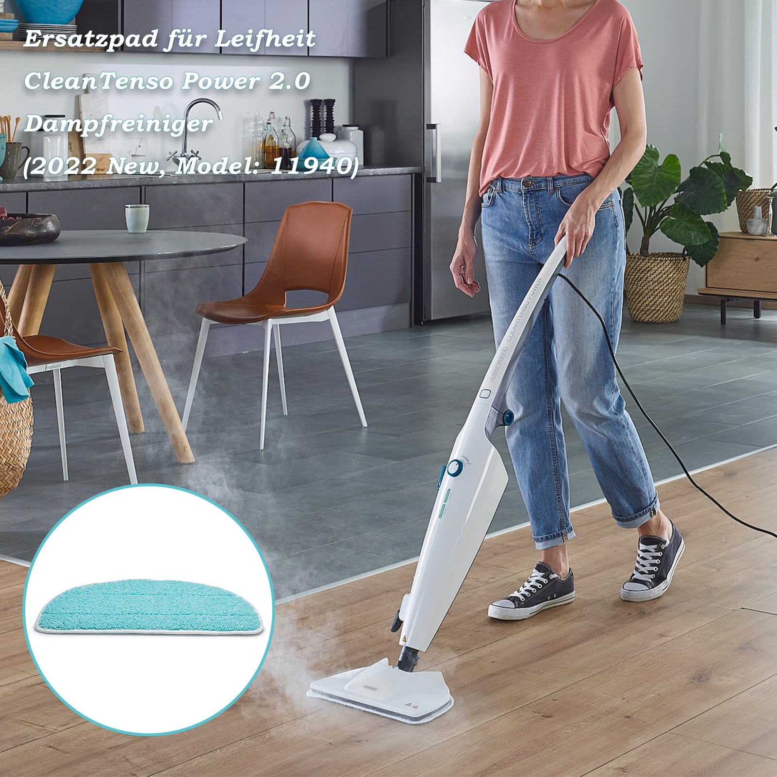 Frisch geputzt in Nullkommanichts! Diese 6 Ersatzpads passen perfekt für deinen Leifheit CleanTenso Power 2.0 Dampfreiniger (Modell 11940). Aus saugstarker Mikrofaser, die hartnäckigen Schmutz, Haare und Wasserflecken super entfernt. Einfach zu wechseln - tritt auf das Fußband, nimm das alte Pad raus und klatsch das neue rein. Waschbar bei 60°C, also immer wieder verwendbar. Perfekt für alle Böden: Laminat, Fliesen, Holz, Marmor - alles blitzblank und porentief rein. Nie wieder mit schmutzigen Lappen rumhantieren! Mit diesen Pads macht putzen sogar fast Spaß. Im 6er-Pack hast du lange was davon und sparst dabei noch Geld.