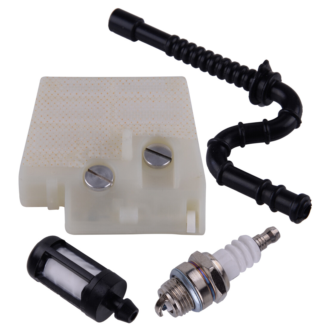 Hey Kettensägen-Besitzer! Dieses Ersatzteil-Kit für die Stihl 026 und MS260 ist ja mal richtig praktisch. Da ist alles drin, was du für ne Grundwartung brauchst: Ein Kraftstofffilter, ein Luftfilter, eine Zündkerze und zwei Stabmuttern. Alles aus hochwertigem Metall - keine Billig-Teile die nach zweimal Benutzen kaputt gehen. Der Luftfilter hält zuverlässig Dreck und Verunreinigungen vom Vergaser fern, und die Zündkerze sorgt für nen zuverlässigen Start. Einfach zu installieren - du brauchst kein Spezial-Werkzeug oder besondere Kenntnisse. Das Kit wiegt etwa 127g, ist also super handlich. Perfect für die regelmäßige Wartung deiner Kettensäge. So vermeidest du teure Reparaturen und deine Säge läuft immer rund. Ob du jetzt Profi bist oder Hobby-Heimwerker - mit diesem Set hast du die wichtigsten Ersatzteile immer parat. Und wenn mal was sein sollte: Der Kundenservice ist top! Kleiner Hinweis: Wegen manueller Messung kann's minimale Größenabweichungen geben, und die Farbe kann auf verschiedenen Monitoren etwas anders aussehen. Aber die Qualität stimmt auf jeden Fall!