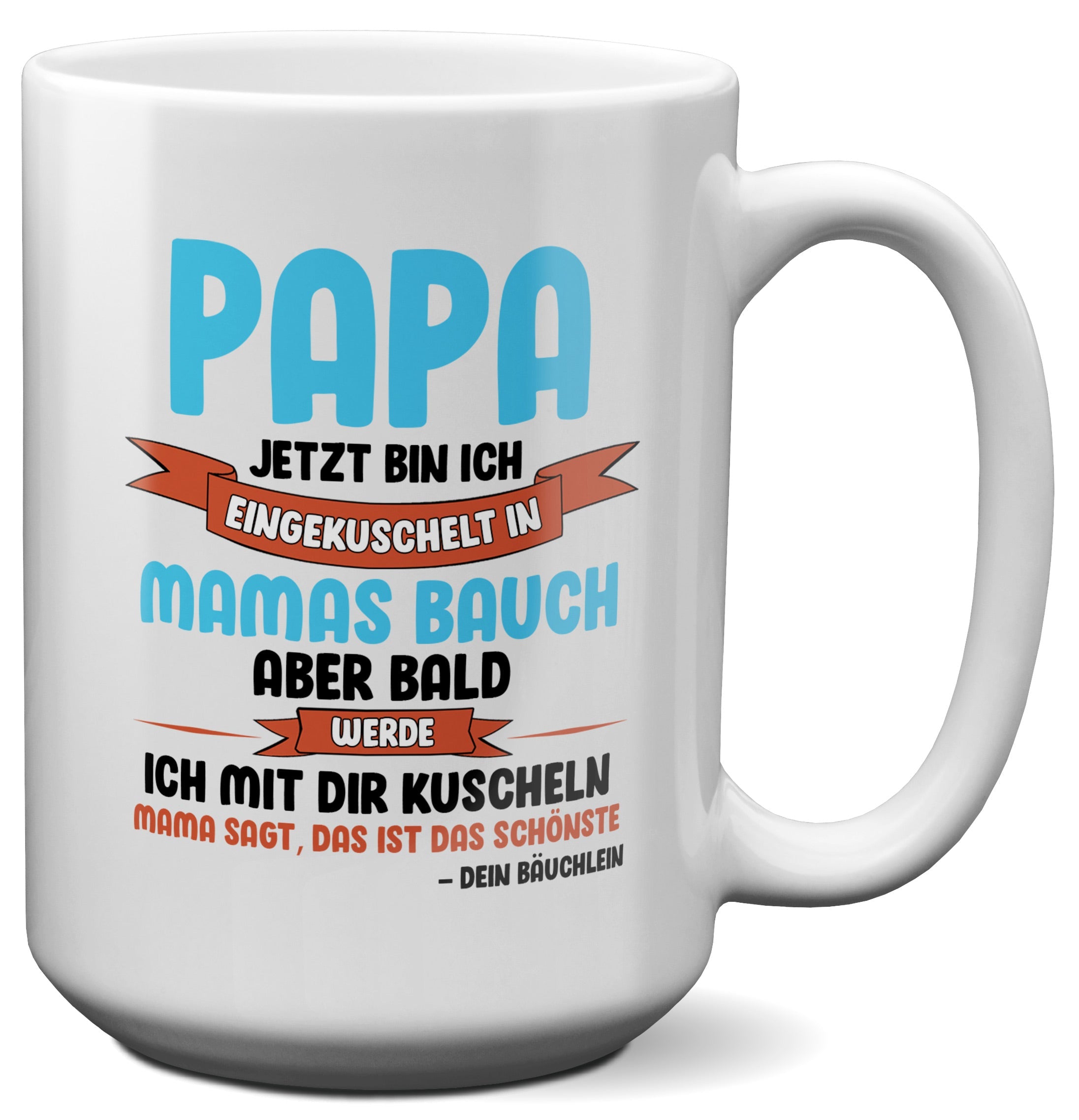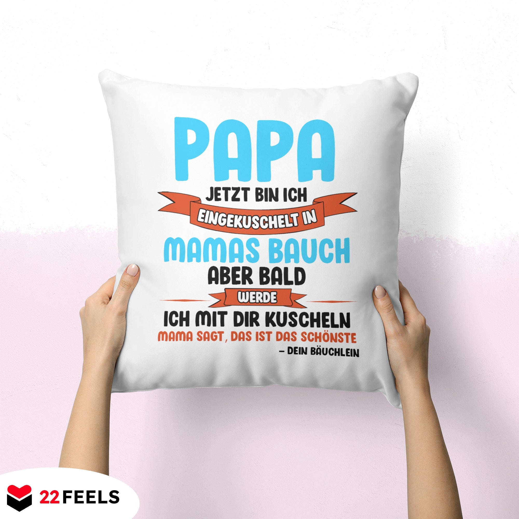 Herzliche Glückwünsche an den werdenden Papa! Dieses bezaubernde Kissen mit der Aufschrift 'Papa jetzt bin ich eingekuschelt in Mamas Bauch, aber bald werde ich mit dir kuscheln' ist das perfekte Geschenk zur Schwangerschaft. Im praktischen 40x40cm Format, quadratisch und wunderbar weich. Aus hautfreundlicher Microfaser (100% Polyester) mit hochwertiger Füllung. Der abziehbare Bezug ist maschinenwaschbar bei 30°C. Perfekt als Deko fürs Wohnzimmer, Schlafzimmer oder als kuschelige Stütze für Rücken und Nacken. Eine tolle Geschenkidee für Vatertag, Geburtstag oder einfach so zur Schwangerschaftsverkündigung. Mach dem stolzen Papa eine Freude und zeig ihm, wie sehr er sich auf das Baby freuen kann! Einfach bestellen, überreichen und strahlende Augen garantieren - so einfach macht man werdenden Vätern eine Freude!