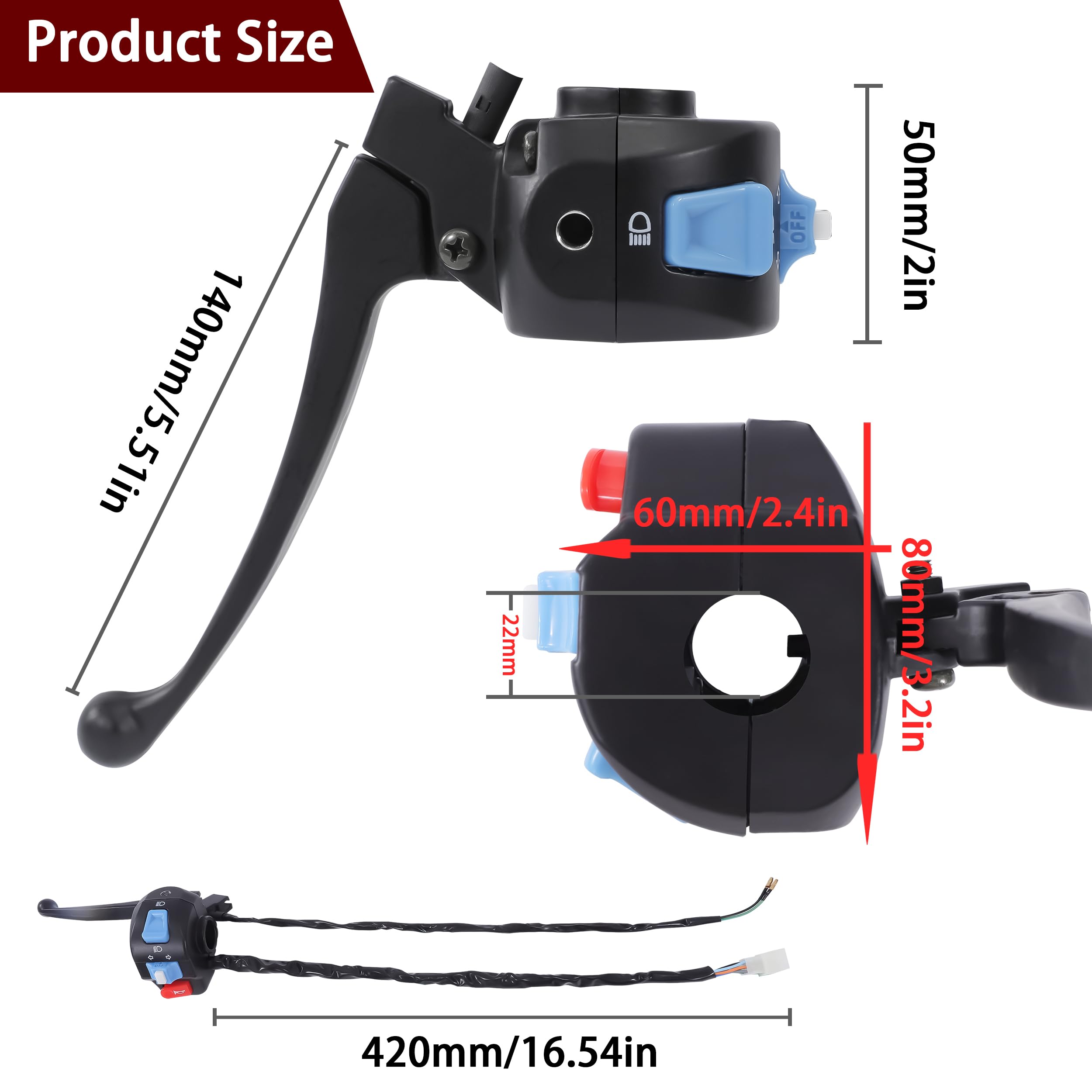 Alles unter Kontrolle - mit diesem praktischen 2-in-1 Lenkerschalter! Der kleine Helfer mit 22mm Griffdurchmesser passt an fast jedes E-Bike, Motorrad oder E-Scooter. Steuere ganz einfach Scheinwerfer und Hupe mit nur einem Schalter - platzsparend und super praktisch. Das 170cm lange Kabel gibt dir genug Spielraum für die Installation. Aus robustem Nylon gefertigt, hält der Schalter auch bei Regen stand. Die interne Doppelschutz-Funktion sorgt für lange Lebensdauer. Einfach montieren und schon geht's los! Perfekt für Mountainbikes, ATVs und alle, die ihr Bike aufrüsten wollen. Der Schalter sitzt sicher am Lenker und verrutscht nicht. So hast du immer die wichtigsten Funktionen griffbereit. Kein langes Suchen mehr - einfach draufdrücken und losfahren! Besonders praktisch für nächtliche Fahrten oder bei schlechter Sicht. Mach dein Bike noch sicherer und komfortabler mit diesem cleveren Schalter. Einfach den alten Schalter ersetzen oder neu installieren - in wenigen Minuten erledigt.