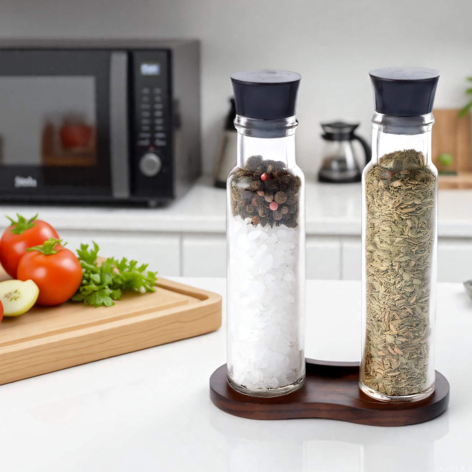 Schluss mit umfallenden Pfeffermühlen! Dieser TOBBOMEY Holzuntersetzer aus Akazienholz bringt Ordnung in deine Küche. Die quadratische Basis (6,7x6,7x2 cm) ist rutschfest und schützt deine Tische und Arbeitsflächen vor Kratzern. Das natürliche Holzdesign in Kaffeefarbe passt super zu jeder Kücheneinrichtung - ob modern oder rustikal. Perfekt für Pfeffer- und Salzmühlen, hält er alles zusammen und verhindert lästiges Verschütten. Die feine Verarbeitung unterstreicht die Schönheit deiner Mühlen und gibt deinem Esstisch einen Hauch von Charme. Einfach die Mühlen draufstellen und sich über eine saubere, organisierte Küche freuen. Praktisch, stylisch und funktional - mehr braucht's nicht für mehr Ordnung beim Kochen und Essen!