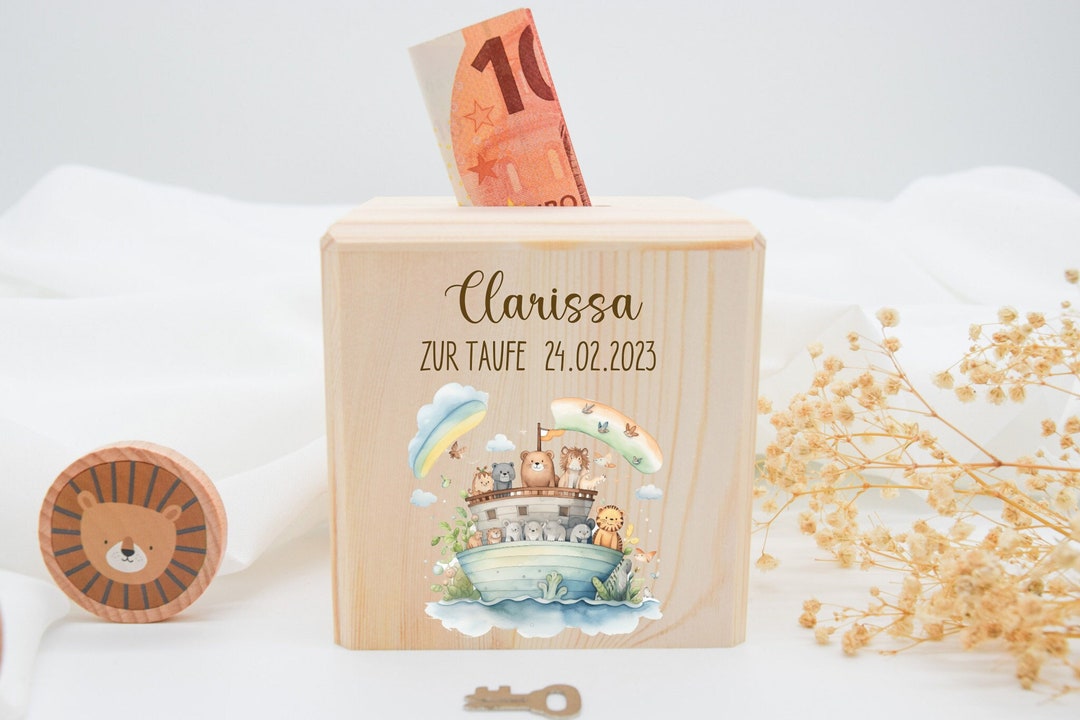 Die perfekte Geschenkbox für besondere Anlässe! Diese personalisierte Briefbox mit dem süßen Arche Noah Motiv wird zum bleibenden Erinnerungsstück. Perfekt für Taufen, Geburten, Geburtstage oder Kommunionen. In der stabilen Karton-Box (20x20x20cm) finden alle Glückwunschkarten und Geldgeschenke Platz. Der Briefschlitz im Deckel ist praktisch und sicher. Wird personalisiert mit Namen des Kindes und Datum des Festes geliefert. Einfach zusammenzufalten und sofort einsatzbereit. Weiß, leicht glänzend - passt zu jeder Deko. Wichtig: Nach Kauf innerhalb 12 Stunden Personalisierungsdaten mitteilen. Ein Geschenk, das in Erinnerung bleibt!
