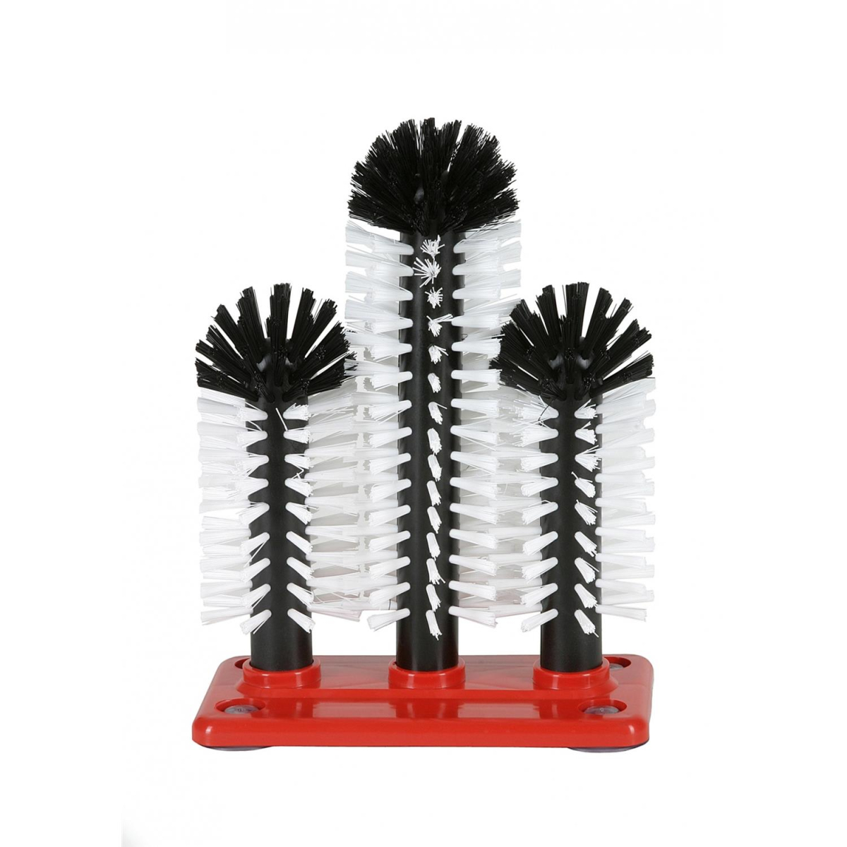 Dieser 3-Bürsten Gläserspüler macht das Reinigen von Gläsern zum Kinderspiel! Mit drei verschiedenen Bürsten aus Nylon erreichst du jede Ecke deiner Gläser! Der Bürstenkopf schwenkt in beide Richtungen - perfekt für Cocktailgläser, Weingläser oder normale Wassergläser! Einfach in die Spüle legen, der Saugfuß hält bombenfest! Aus strapazierfähigem Kunststoff und Nylonborsten - hält ewig! Besonders praktisch für Bars, Restaurants oder einfach für zu Hause! Nie wieder Probleme mit schwer zu reinigenden Gläsern! Einfach benutzen, ausspülen und trocknen - so einfach kann Glasreinigung sein! Deine Gläser werden strahlend sauber!