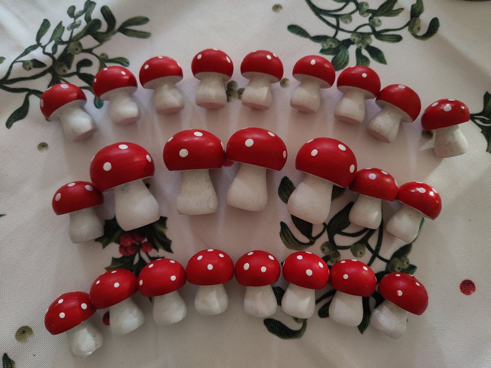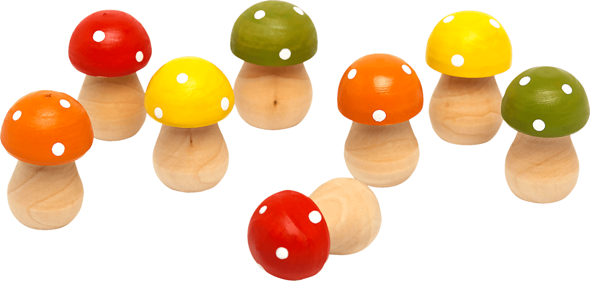 Kreativität fördern war noch nie so süß! Diese 12 Holzpilze in verschiedenen Größen (3-9,8cm) sind perfekt für Bastelprojekte mit Kindern.\n\nAus naturbelassenem Holz, komplett unlackiert und ohne scharfe Kanten. Perfekt für kleine Kinderhände - absolut sicher und angenehm zu bearbeiten.\n\nDeine Kinder können:\n• Mit Acrylfarben bemalen\n• Buntstifte verwenden\n• Glitzer und Aufkleber aufbringen\n• Ihrer Fantasie freien Lauf lassen\n\nJeder Pilz hat eine einzigartige Form und Größe. So entsteht eine vielfältige Pilz-Familie, die jedes Kinderzimmer verschönert.\n\nNicht nur für's Bemalen geeignet:\n• Märchenwald-Deko fürs Zimmer\n• Puppenhaus-Accessoires\n• Garten-Dekoration\n• Geburtstags-Party-Deko\n• Frühlings-Bastelprojekte\n\nDie glatte Oberfläche nimmt Farben super an und die natürliche Holzmaserung gibt jedem Pilz Charakter.\n\nPerfekt für:\n• Kindergarten und Vorschule\n• Kreativ-AGs in der Schule\n• Regentage zu Hause\n• Geburtstagsfeiern\n• Therapie und Förderung\n\nFördere die Feinmotorik und Kreativität deiner Kinder mit diesen niedlichen Holzpilzen. Sie machen nicht nur Spaß, sondern sind auch pädagogisch wertvoll.\n\nHol dir das Set und lass die Bastelstunde beginnen! Die Ergebnisse werden dich begeistern.