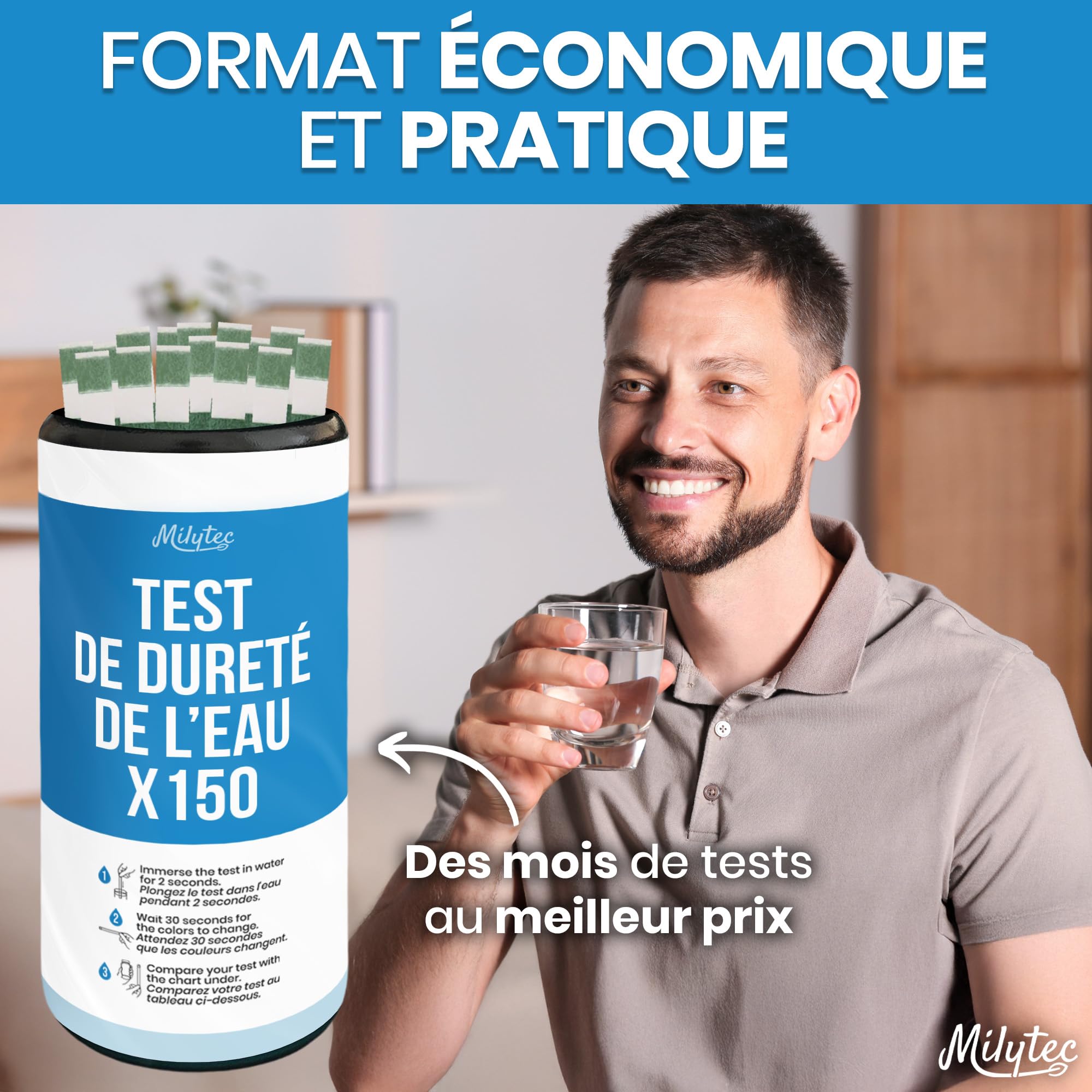 Willst du wissen wie hart dein Wasser ist? Mit diesen Teststreifen kein Problem! 150 Stück luftdicht verpackt - reicht für ne ganze Weile. Einfach ins Wasser halten und sofort siehst du das Ergebnis in °f, °dH oder ppm. Perfekt für Trinkwasser, Aquarium, Pool oder Haushaltsgeräte. Schütze deine Kaffeemaschine und Geschirrspüler vor Kalk! Einfache Anwendung - keine Vorkenntnisse nötig. Regelmäßig testen und rechtzeitig handeln bevor sich Kalk absetzt. Macht Wasserhärte messen zum Kinderspiel! Einfach reinhalten, ablesen und Bescheid wissen - so einfach geht's!