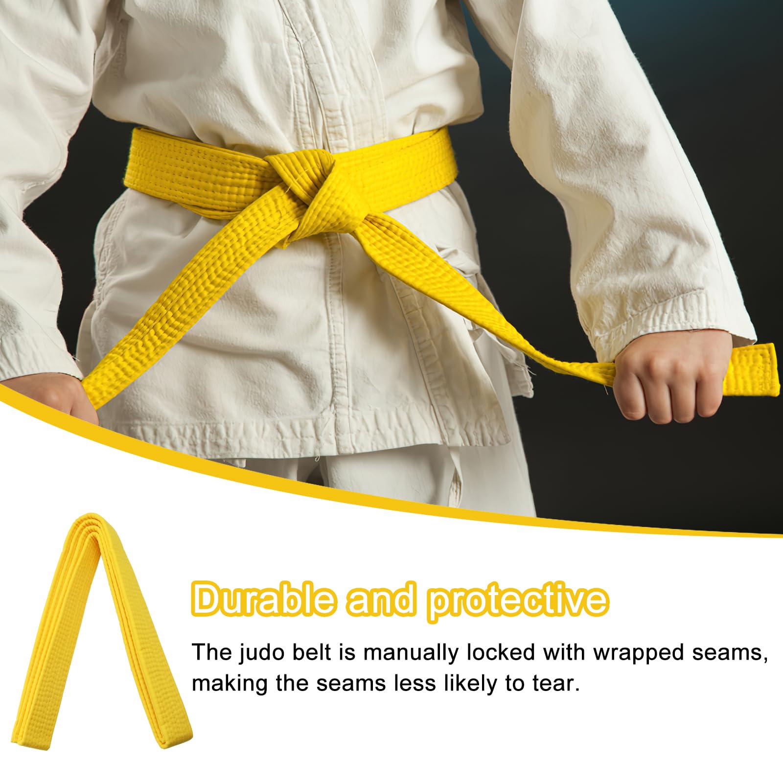 • EIHI Taekwondo Gürtel Gelb 180cm - Kampfsportgürtel Für Karate, Judo, Aikido
