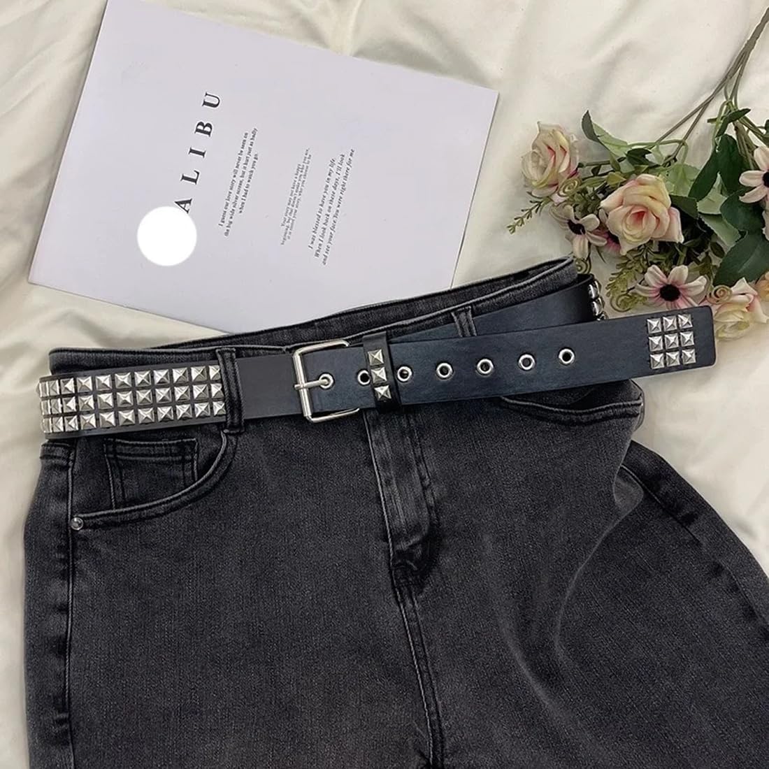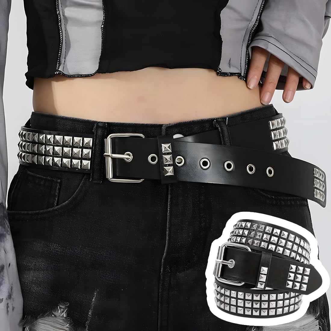 Bock auf was Anderes? Dieser Y2K Nietengürtel von EPINGBP ist richtig ausgefallen! Mit drei Reihen Pyramiden-Nieten im Punk-Rock-Style. Aus Kunstleder mit silberner Schnalle - sitzt super und sieht krass aus. Passt zu Jeans, Röcken, Lederjacken... einfach zu allem! Für Männer und Frauen gleichermaßen cool. Ob fürn Club, Konzert oder täglichen Style - damit fällst du auf. Auch perfekt als Geschenk für Skater, Tänzer oder Musik-Fans. Zeig allen, dass du Stil hast!