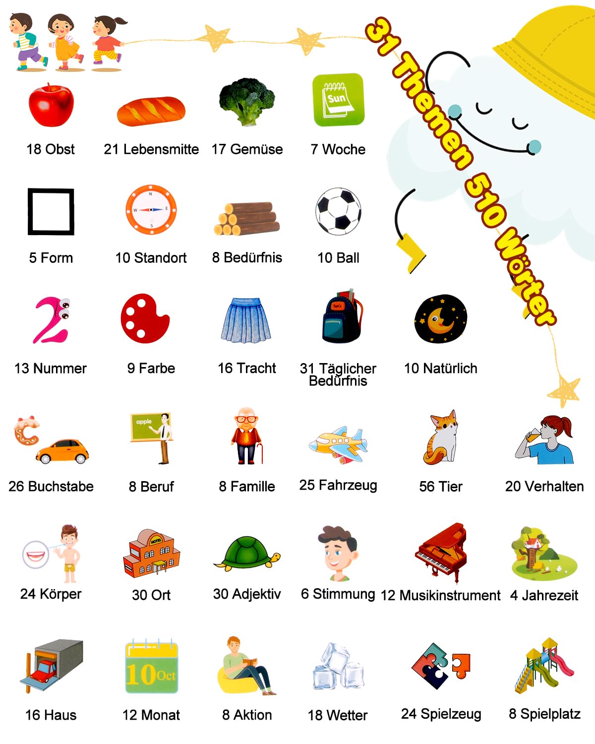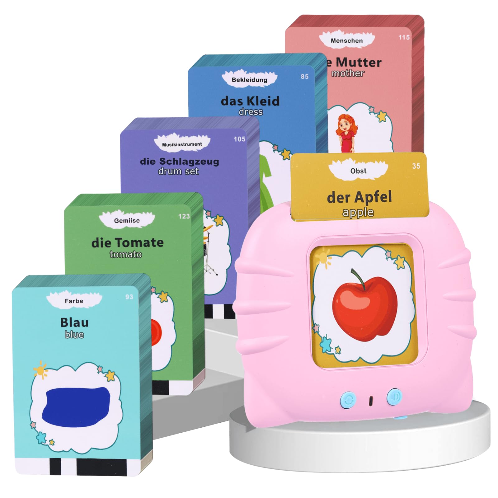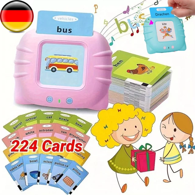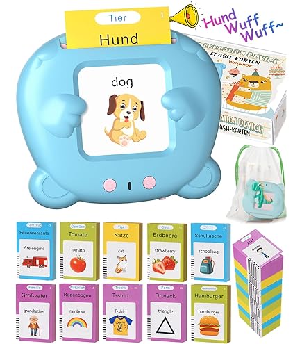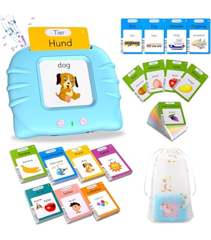 Mega praktisch für die Kleinen! Diese sprechenden Lernkarten machen Kindern richtig Spaß beim Deutsch lernen. Mit 255 Karten und satten 510 Wörtern - da gibt's viel zu entdecken! Drei Sprachmodi: Deutsch, Englisch oder zweisprachig. Die Themen sind total vielfältig - Tiere, Fahrzeuge, Essen, Farben und vieles mehr. Mit realistischen Geräuschen und klarer Aussprache. Die mitgelieferte Kritzeltafel fördert zusätzlich die Kreativität. Wiederaufladbarer Akku - super für unterwegs! Perfekt für Zuhause, Kindergarten oder Montessori. Ob als Geschenk zum Geburtstag, zu Weihnachten oder zur Einschulung - hier lernen Kinder spielerisch und mit Begeisterung. Kompakt und leicht, ideal für Reisen. Einfach ein tolles Lernspielzeug das wirklich was bringt!