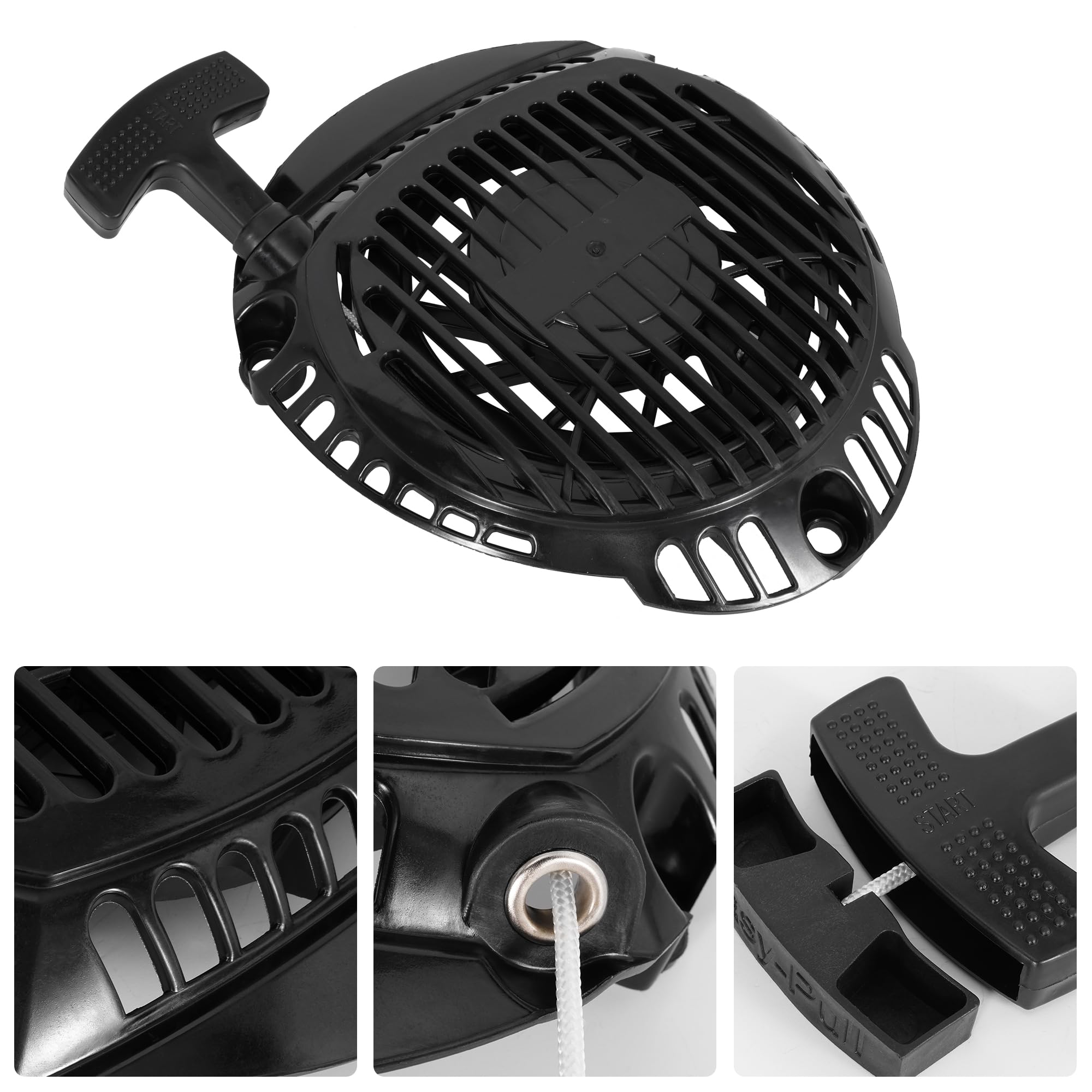 Dieser Rückstoßstarter passt perfekt für deinen Toro Rasenmäher! Für XT650, XT675, XT775, XT800 Modelle mit 6,5-8,0 PS. Ersetzt Originalteil 1416520. Aus hochwertigem Kunststoff und Nylon-Seil, langlebig und stabil. Mit einziehbarer Federzugschnur. Einfach zu montieren, bringt deinen Mäher wieder zum Laufen. Gehäuse-Durchmesser: 6,73 Zoll. Lieferung inklusive Griff und Zugschnur. Ein zuverlässiger Ersatz für deinen Gartenprofi!