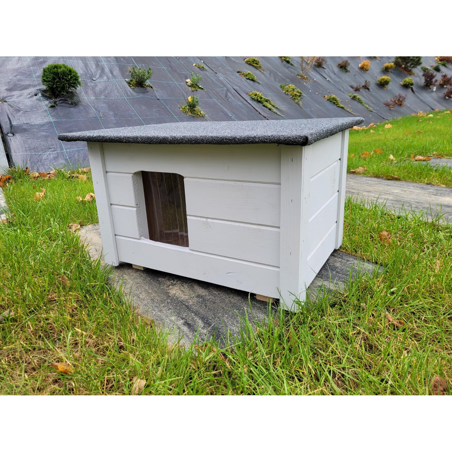 Ein gemütliches Zuhause für dein Haustier! Dieser isolierte Zwinger aus Fichtenholz schützt auch bei kaltem Wetter. 40mm dicke Wände mit 2cm Polystyrol-Isolierung an allen Seiten. OSB-Boden und Balkenkonstruktion - steht trocken und stabil. Dach mit Bitumenbahn wasserdicht. Innenmaße 44x30cm, perfekt für kleine Hunde oder Katzen. Eingang 15x18cm, inklusive Vorhang gegen Zugluft. Dein Tier hat es immer kuschelig warm!